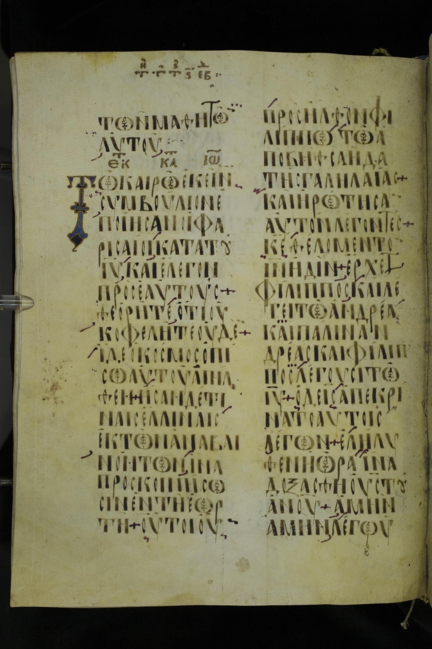 Ninth or tenth century majuscule lectionary on parchment; 273 leaves, 2 columns, 20-21 lines per column. Images were taken at the National Library of Greece in Athens.