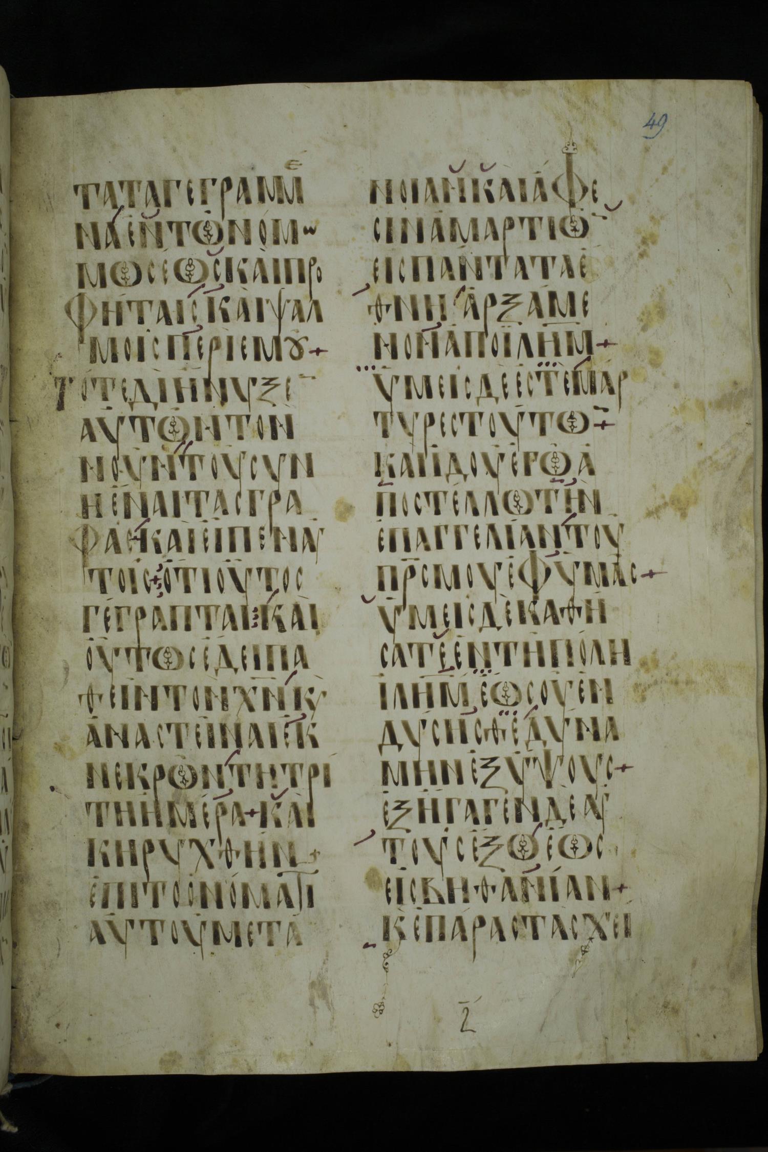 Ninth or tenth century majuscule lectionary on parchment; 273 leaves, 2 columns, 20-21 lines per column. Images were taken at the National Library of Greece in Athens.