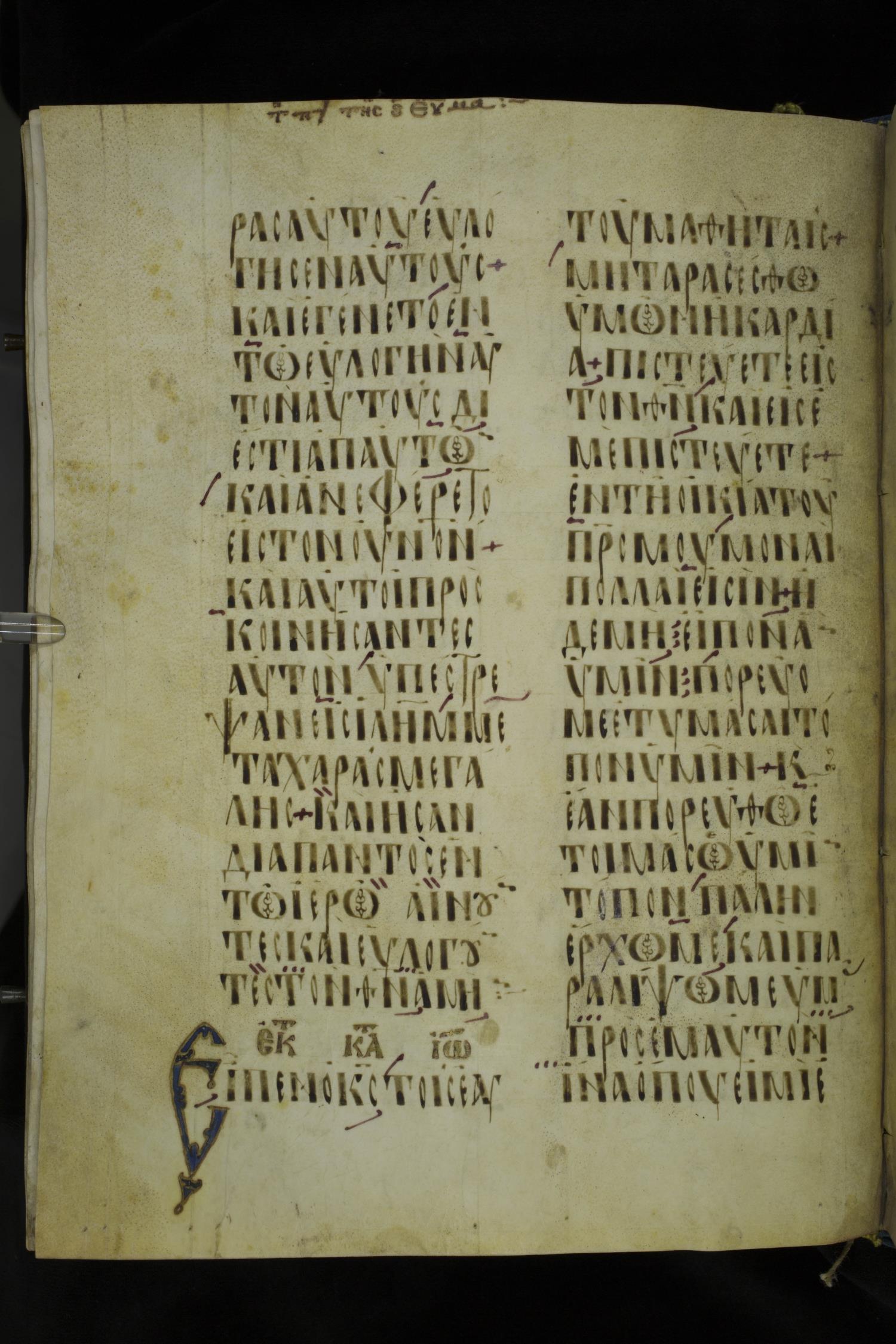 Ninth or tenth century majuscule lectionary on parchment; 273 leaves, 2 columns, 20-21 lines per column. Images were taken at the National Library of Greece in Athens.