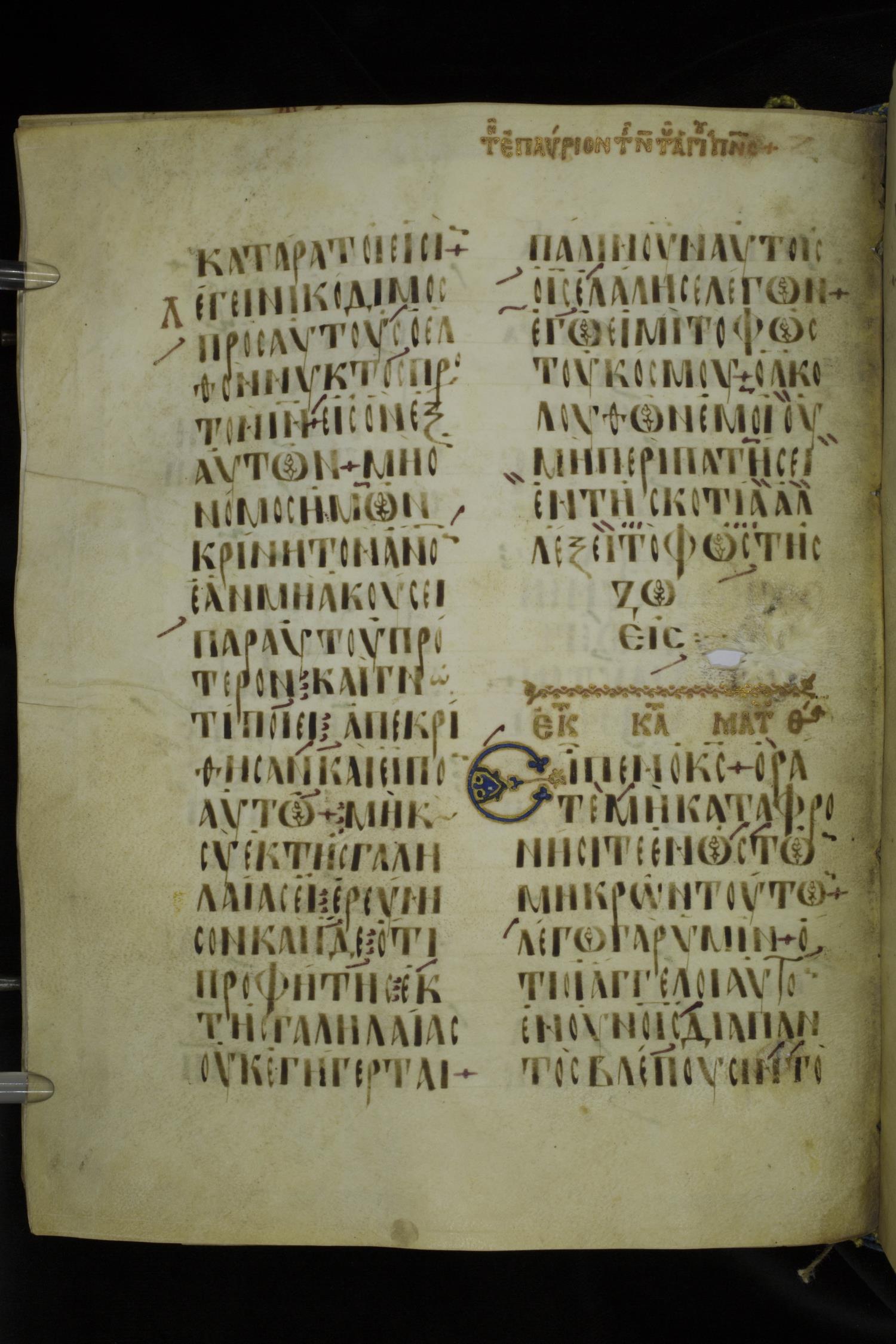 Ninth or tenth century majuscule lectionary on parchment; 273 leaves, 2 columns, 20-21 lines per column. Images were taken at the National Library of Greece in Athens.