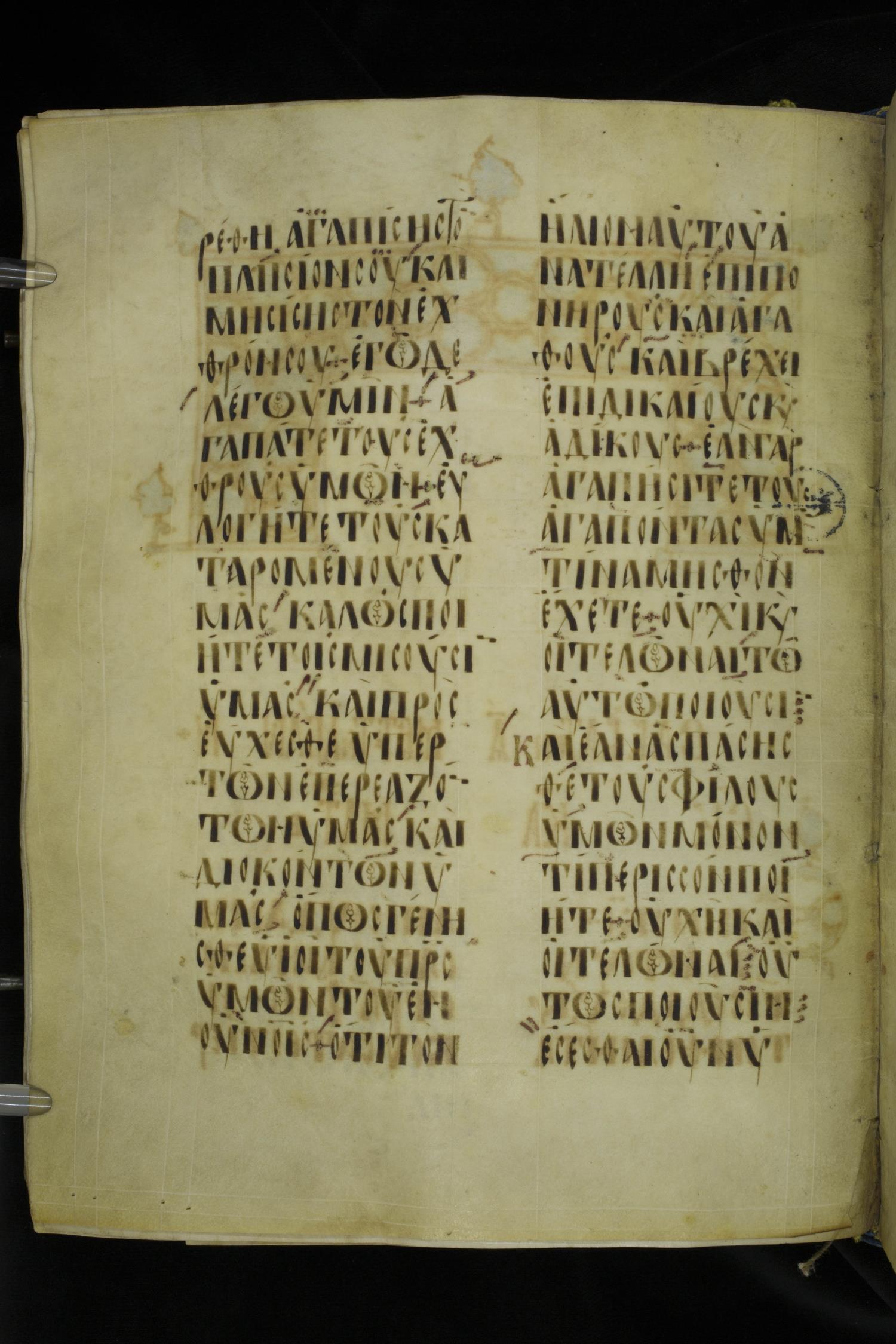 Ninth or tenth century majuscule lectionary on parchment; 273 leaves, 2 columns, 20-21 lines per column. Images were taken at the National Library of Greece in Athens.