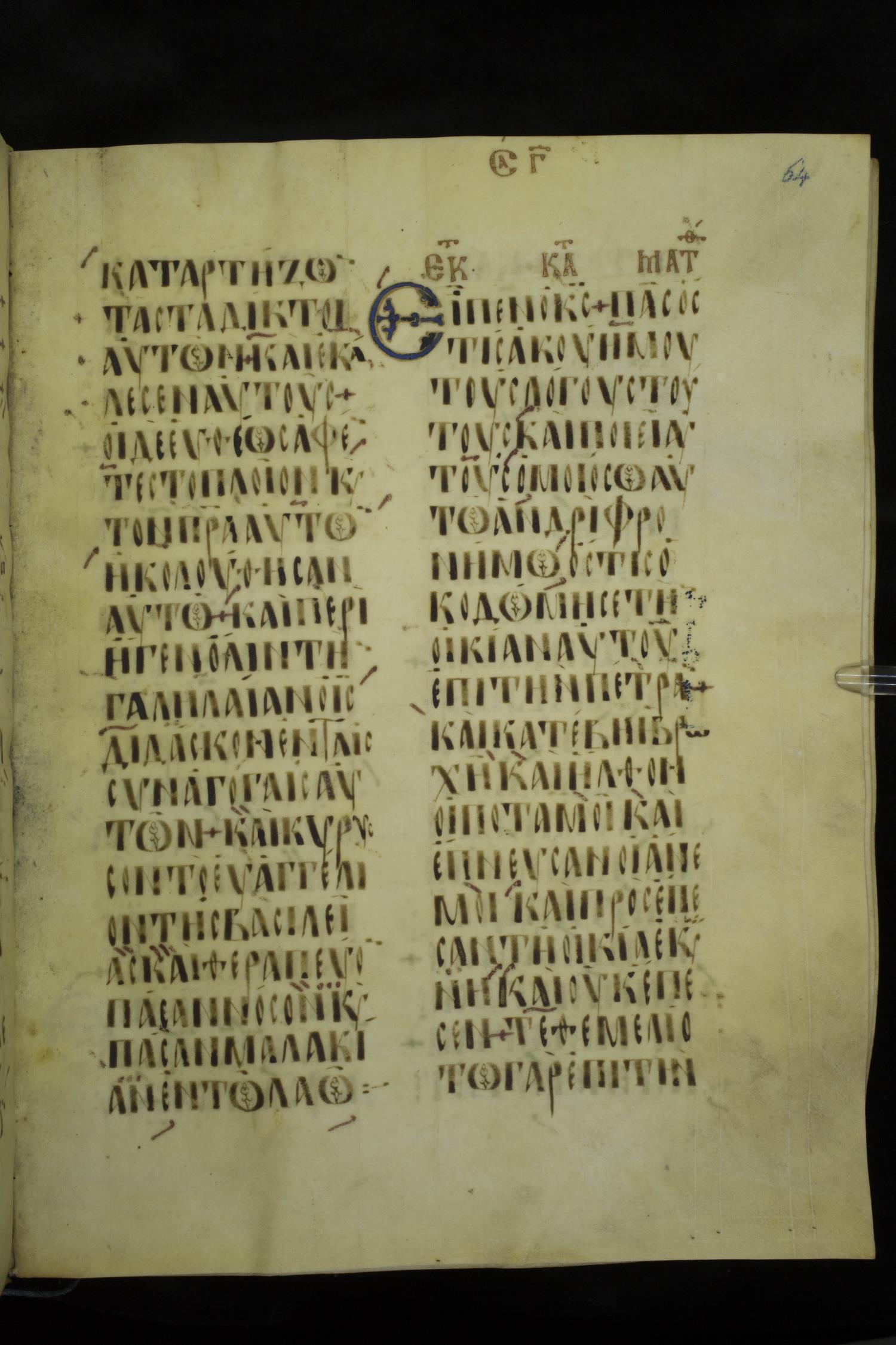 Ninth or tenth century majuscule lectionary on parchment; 273 leaves, 2 columns, 20-21 lines per column. Images were taken at the National Library of Greece in Athens.
