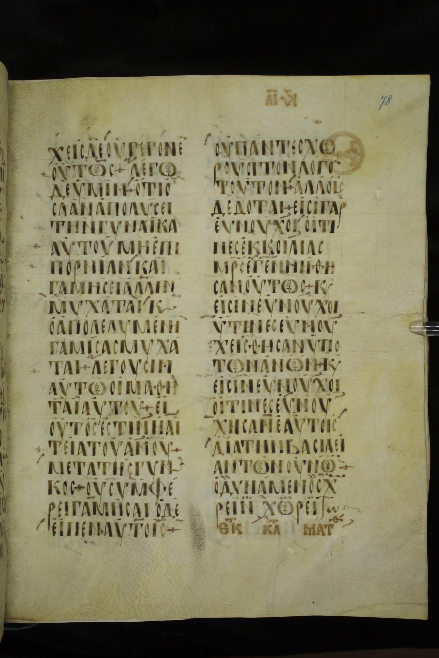 Ninth or tenth century majuscule lectionary on parchment; 273 leaves, 2 columns, 20-21 lines per column. Images were taken at the National Library of Greece in Athens.