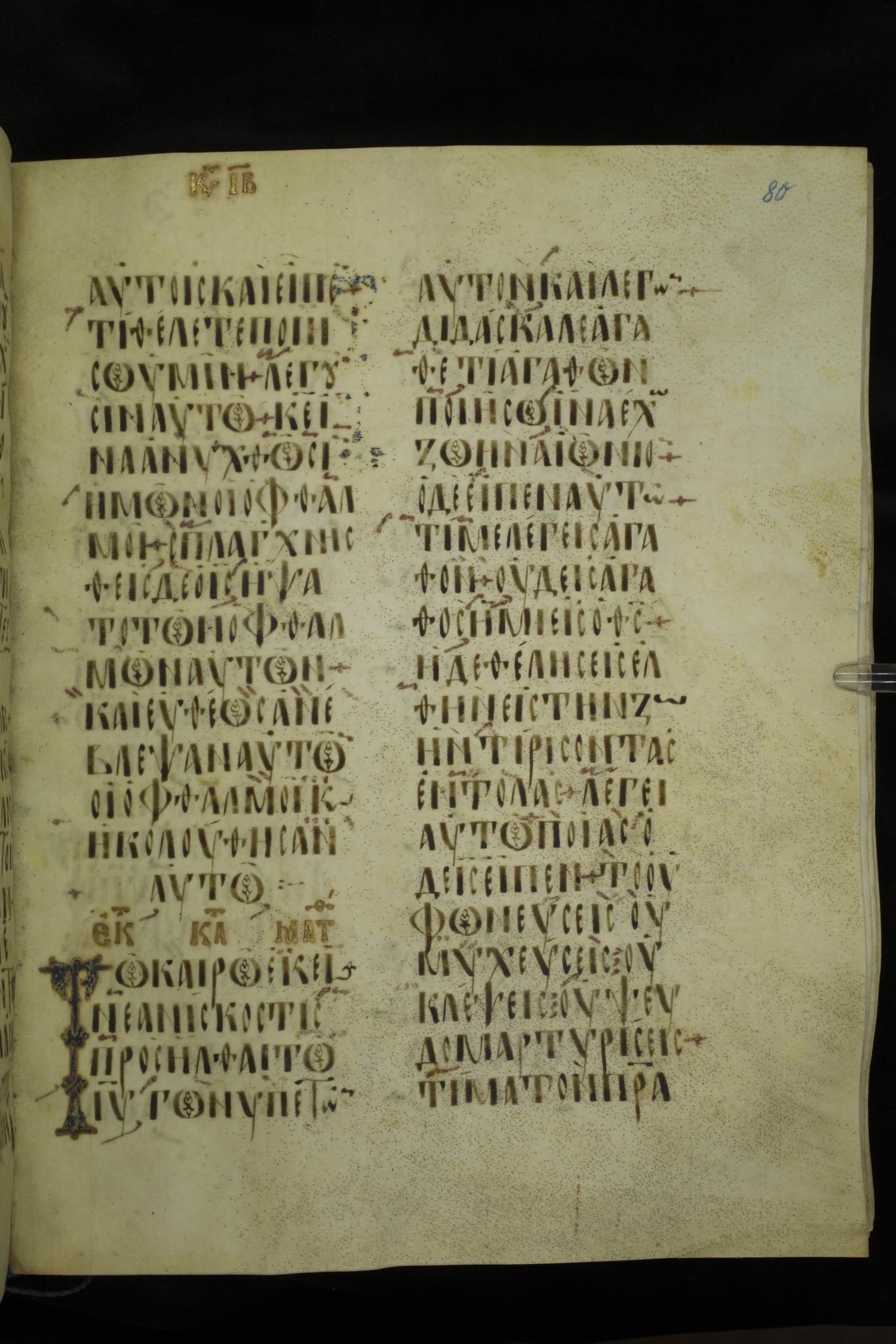 Ninth or tenth century majuscule lectionary on parchment; 273 leaves, 2 columns, 20-21 lines per column. Images were taken at the National Library of Greece in Athens.