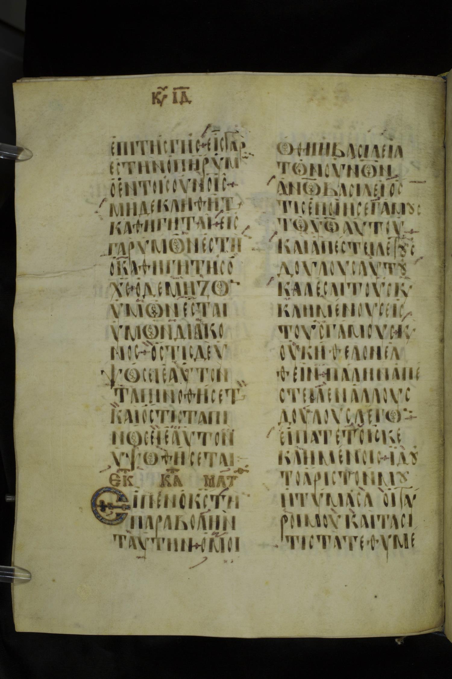 Ninth or tenth century majuscule lectionary on parchment; 273 leaves, 2 columns, 20-21 lines per column. Images were taken at the National Library of Greece in Athens.