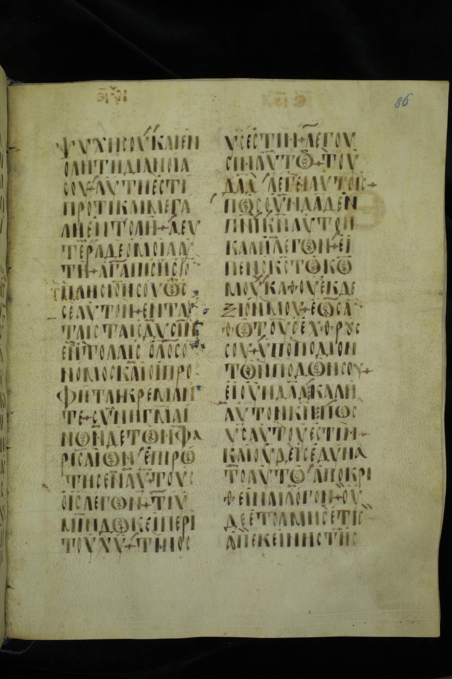 Ninth or tenth century majuscule lectionary on parchment; 273 leaves, 2 columns, 20-21 lines per column. Images were taken at the National Library of Greece in Athens.