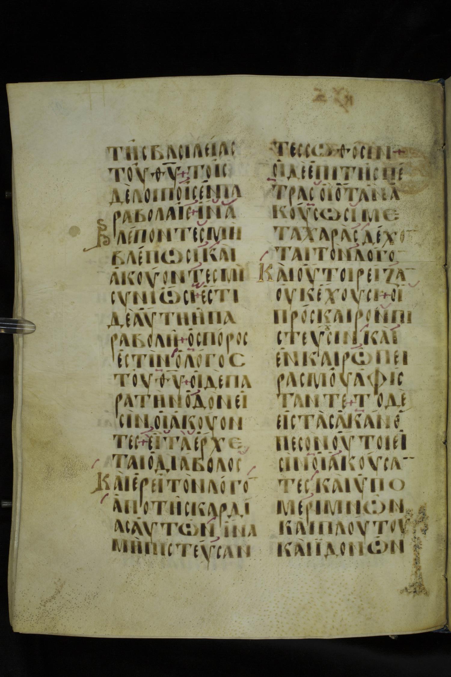 Ninth or tenth century majuscule lectionary on parchment; 273 leaves, 2 columns, 20-21 lines per column. Images were taken at the National Library of Greece in Athens.