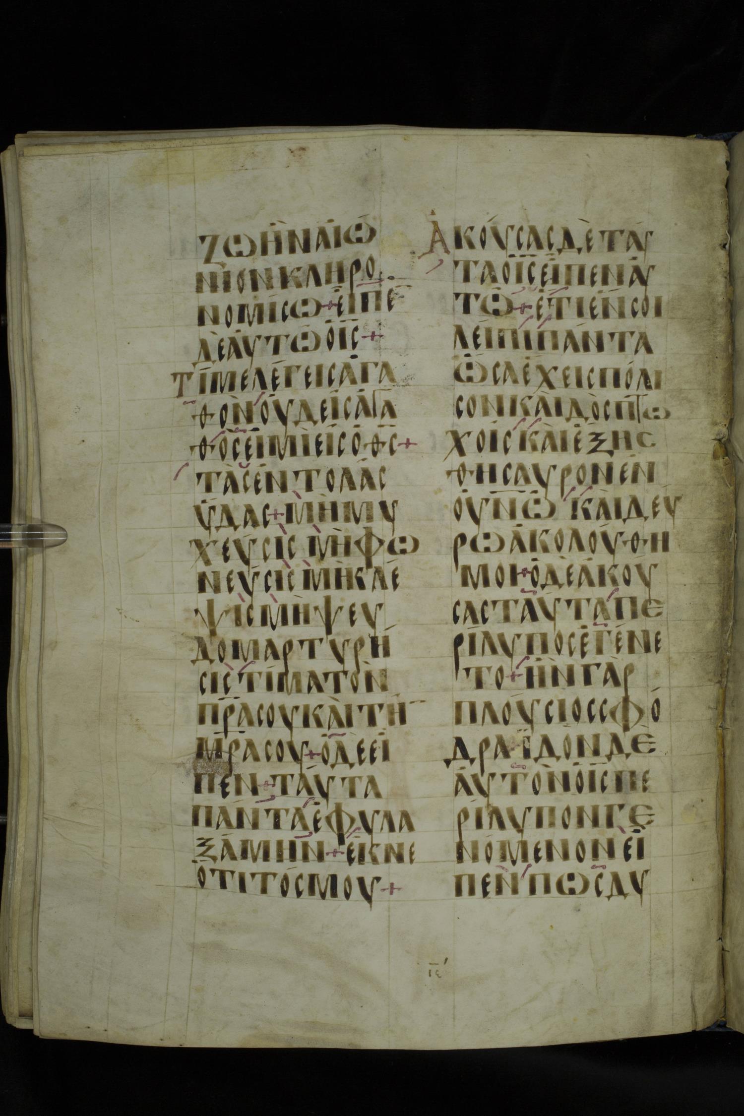 Ninth or tenth century majuscule lectionary on parchment; 273 leaves, 2 columns, 20-21 lines per column. Images were taken at the National Library of Greece in Athens.
