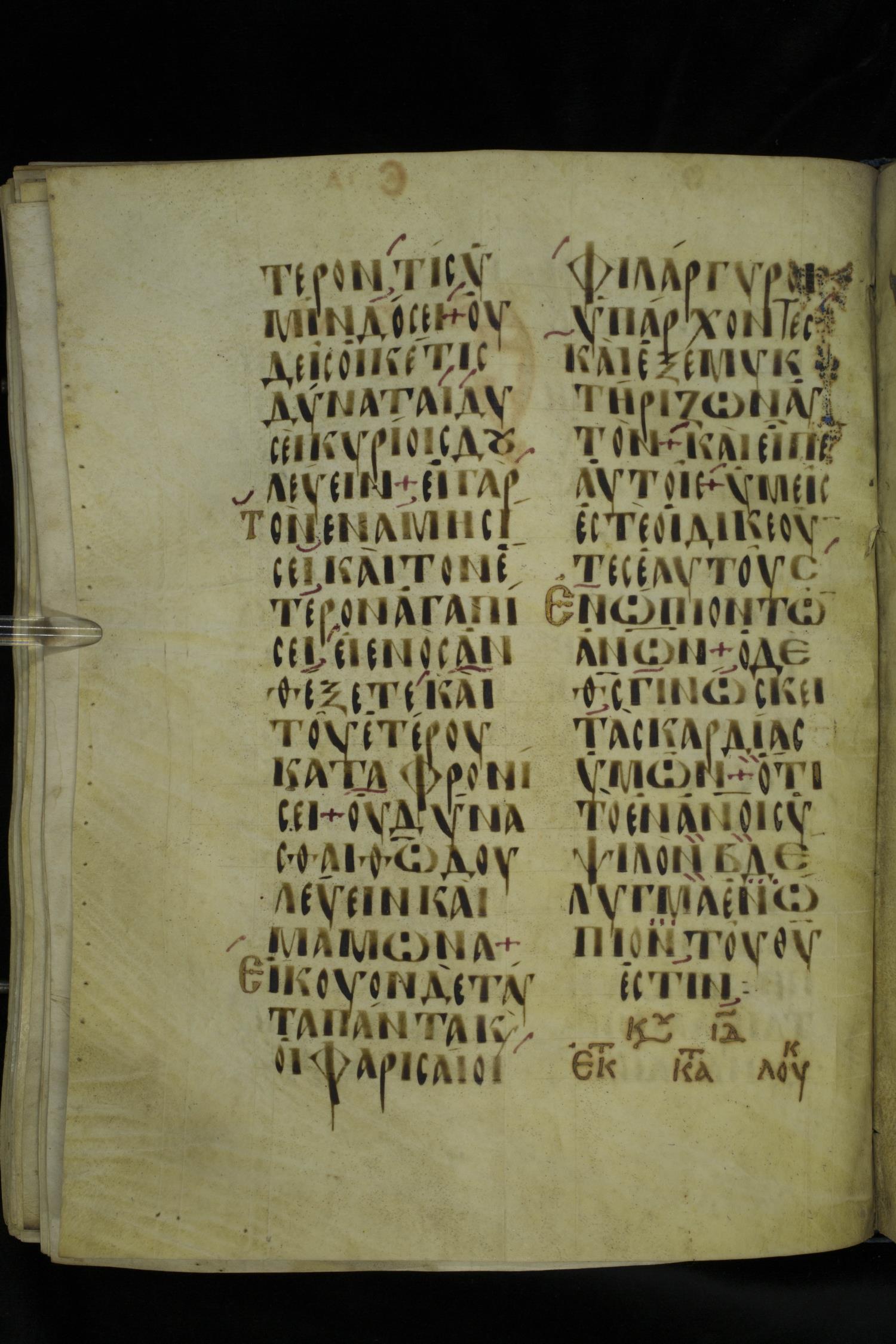 Ninth or tenth century majuscule lectionary on parchment; 273 leaves, 2 columns, 20-21 lines per column. Images were taken at the National Library of Greece in Athens.