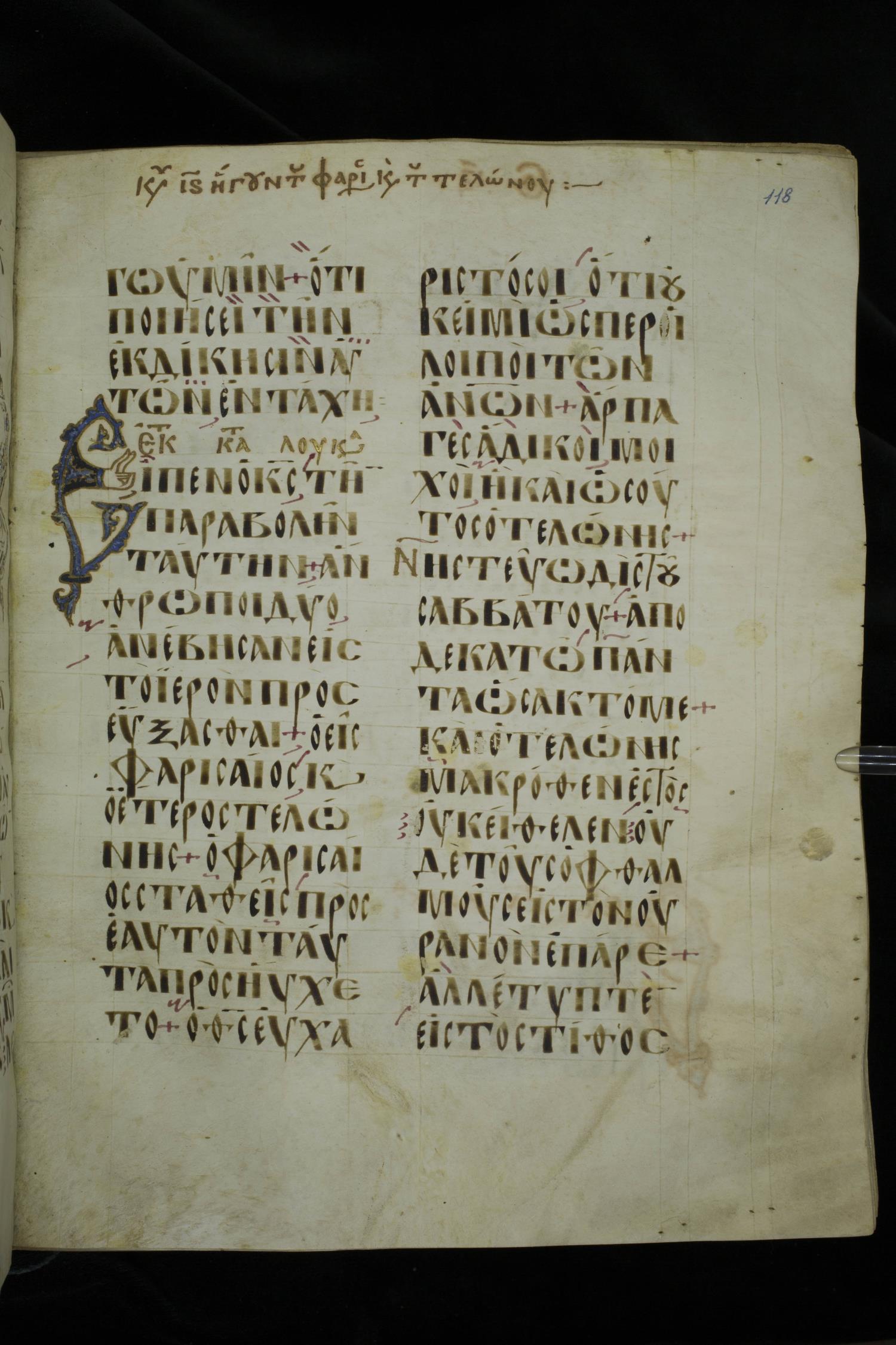 Ninth or tenth century majuscule lectionary on parchment; 273 leaves, 2 columns, 20-21 lines per column. Images were taken at the National Library of Greece in Athens.