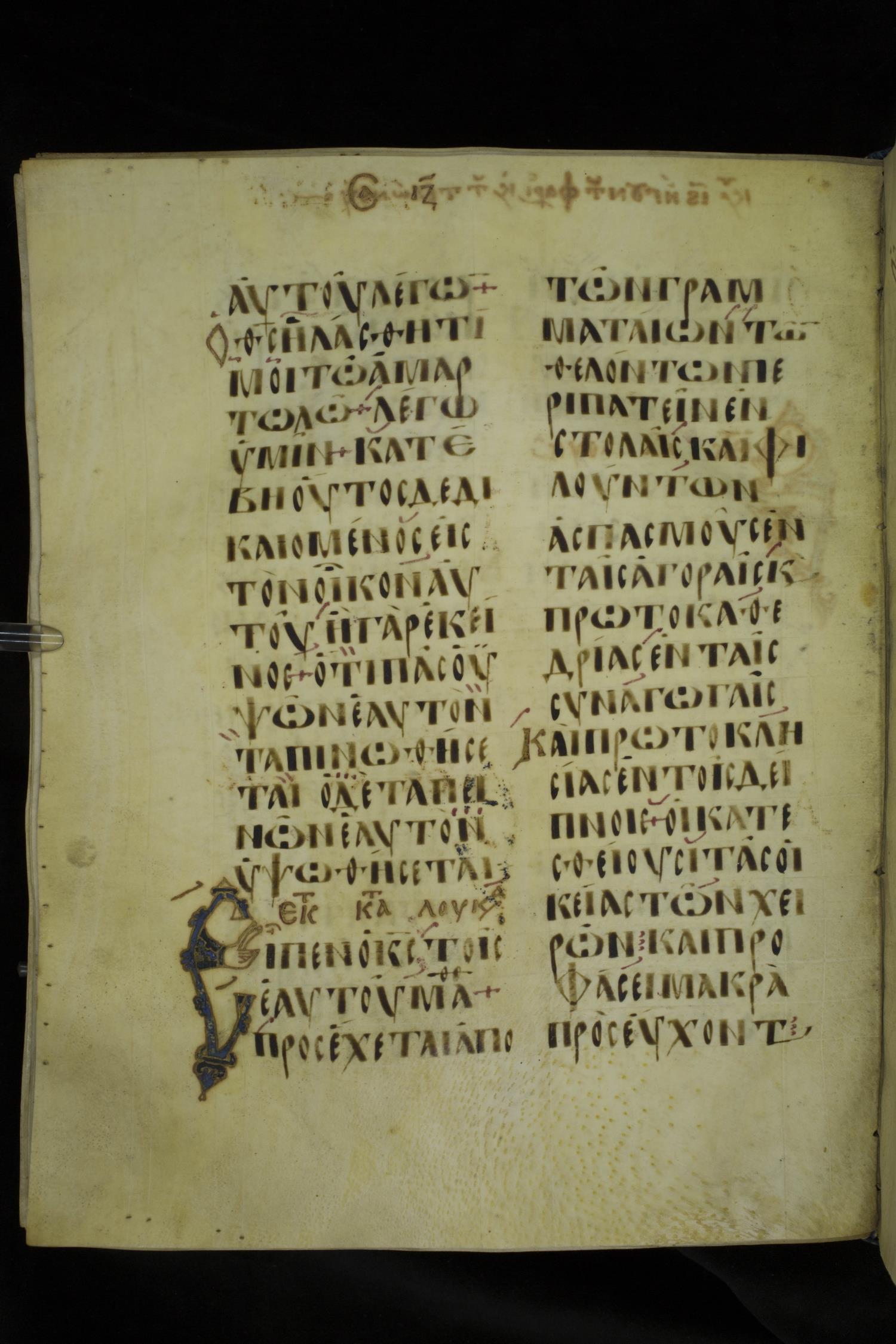 Ninth or tenth century majuscule lectionary on parchment; 273 leaves, 2 columns, 20-21 lines per column. Images were taken at the National Library of Greece in Athens.
