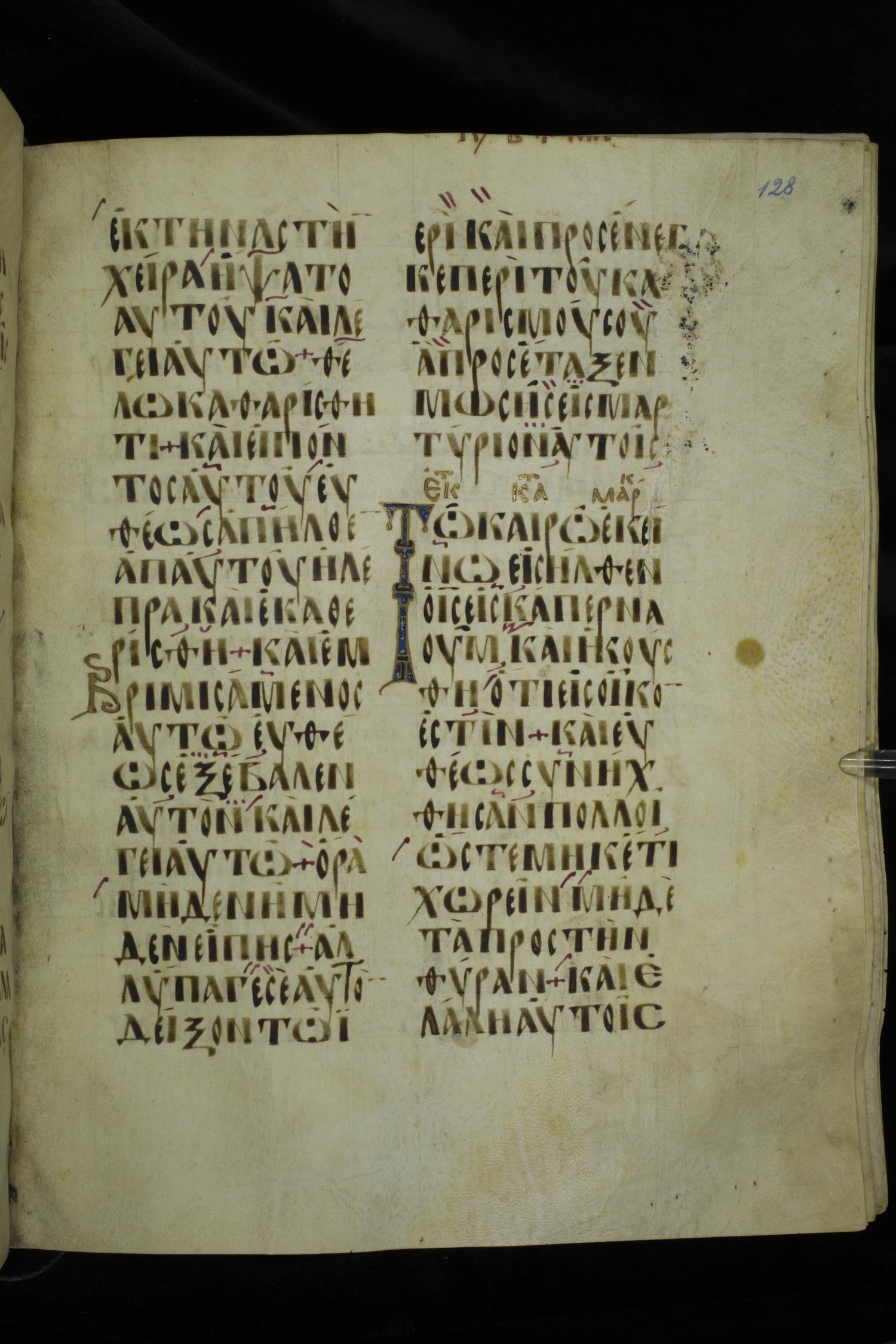 Ninth or tenth century majuscule lectionary on parchment; 273 leaves, 2 columns, 20-21 lines per column. Images were taken at the National Library of Greece in Athens.