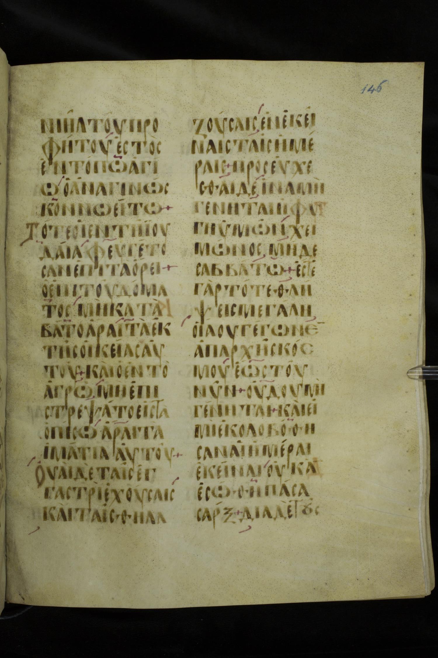 Ninth or tenth century majuscule lectionary on parchment; 273 leaves, 2 columns, 20-21 lines per column. Images were taken at the National Library of Greece in Athens.