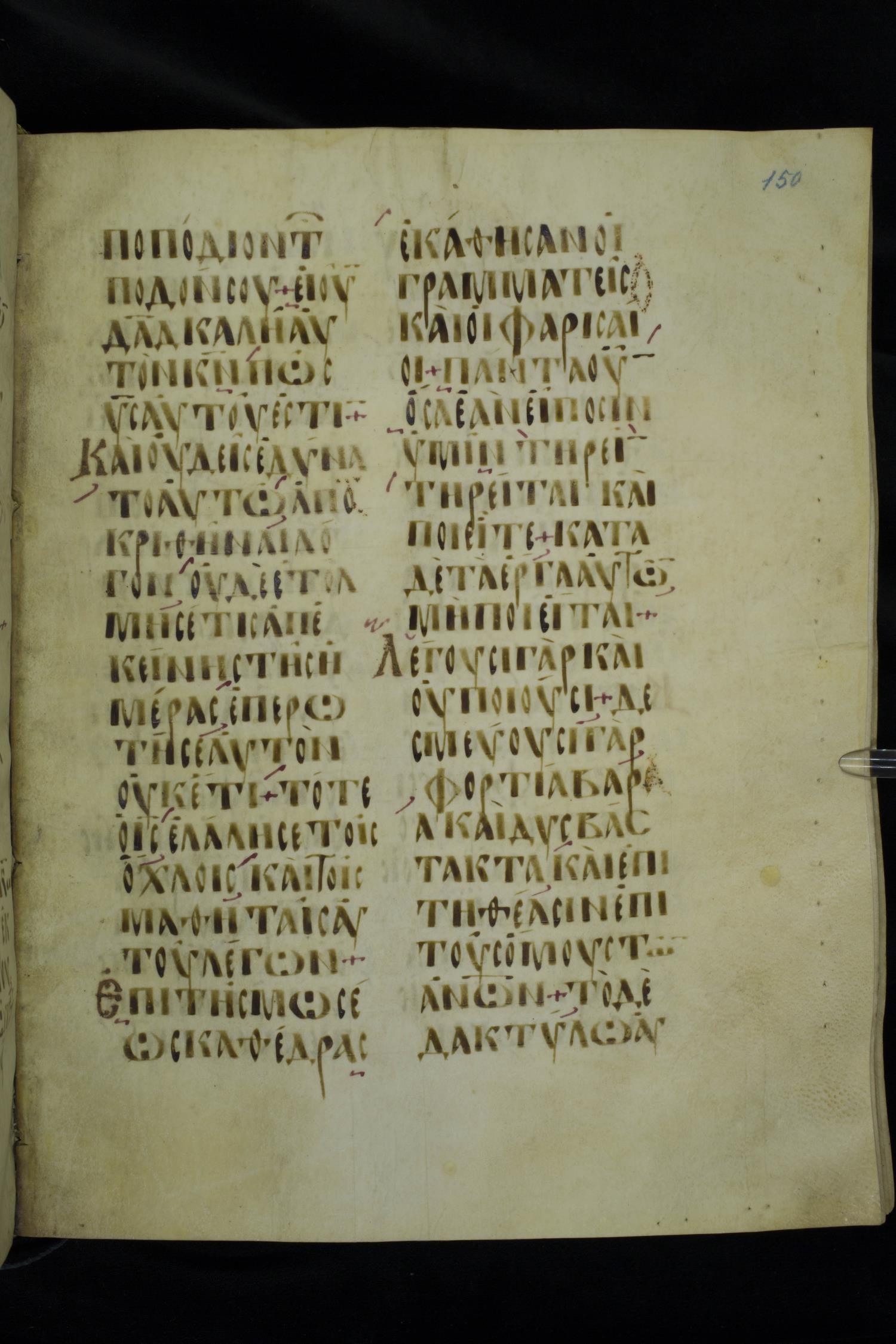 Ninth or tenth century majuscule lectionary on parchment; 273 leaves, 2 columns, 20-21 lines per column. Images were taken at the National Library of Greece in Athens.