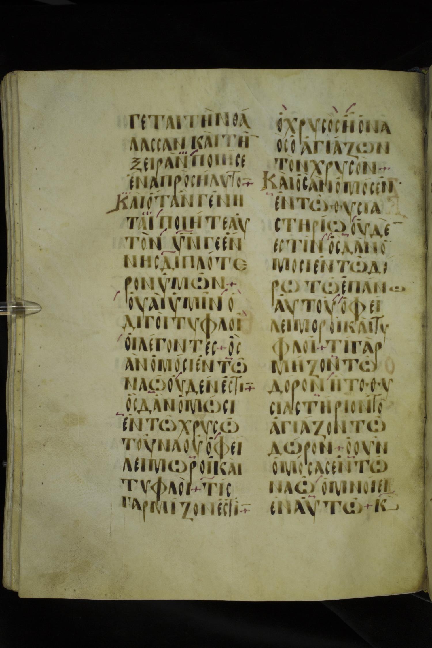 Ninth or tenth century majuscule lectionary on parchment; 273 leaves, 2 columns, 20-21 lines per column. Images were taken at the National Library of Greece in Athens.