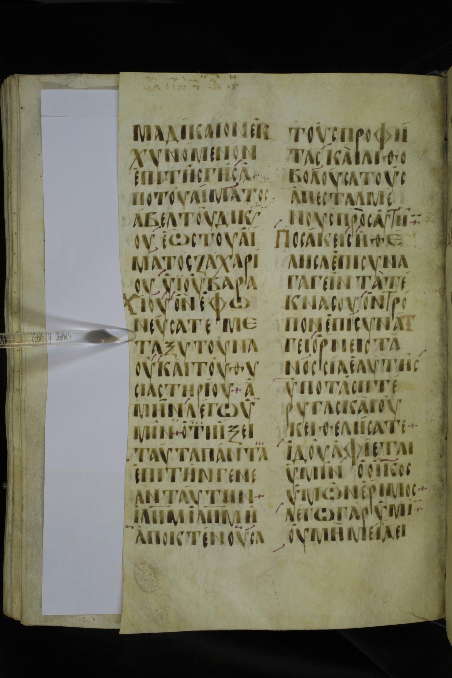 Ninth or tenth century majuscule lectionary on parchment; 273 leaves, 2 columns, 20-21 lines per column. Images were taken at the National Library of Greece in Athens.