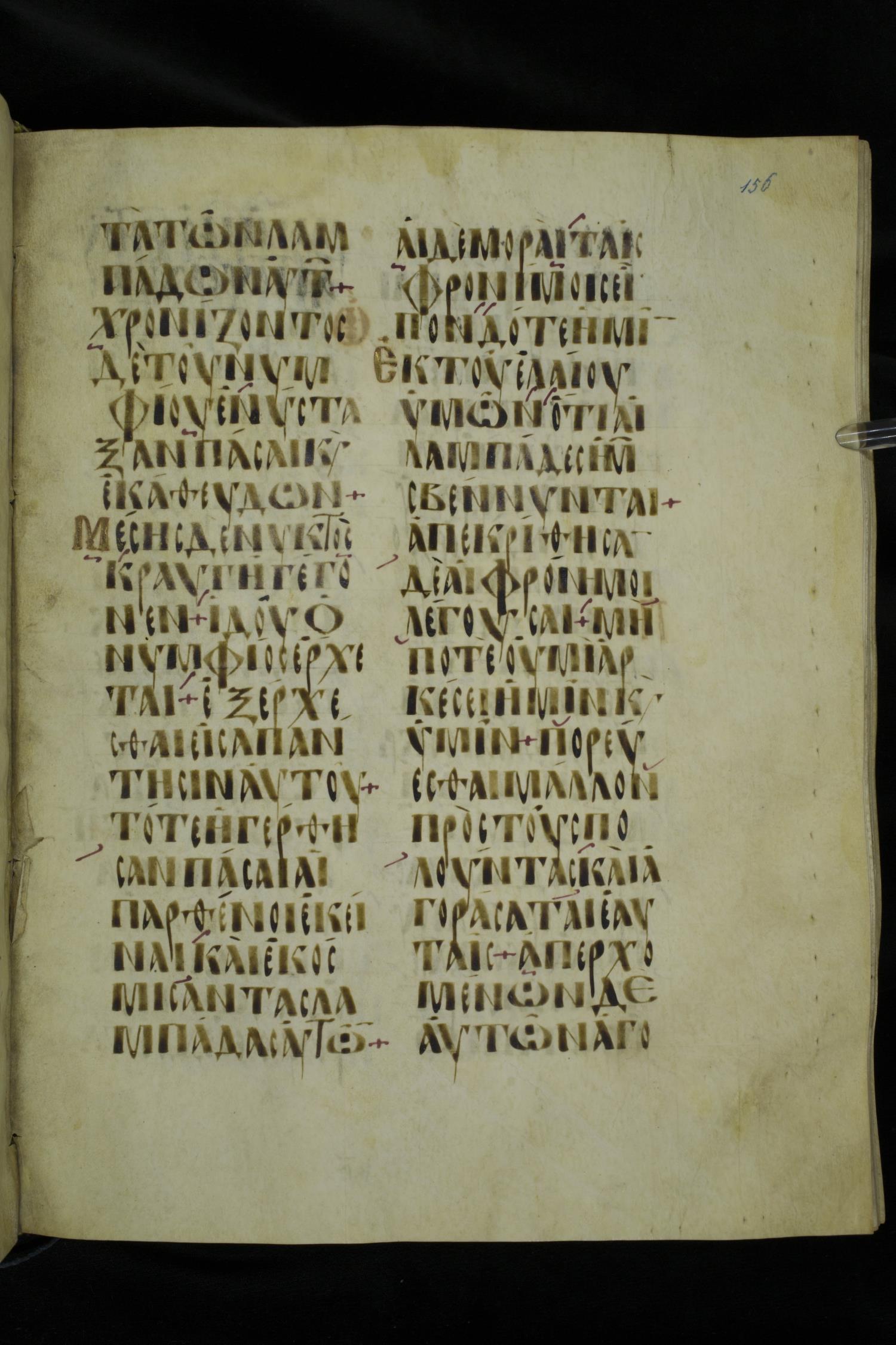 Ninth or tenth century majuscule lectionary on parchment; 273 leaves, 2 columns, 20-21 lines per column. Images were taken at the National Library of Greece in Athens.