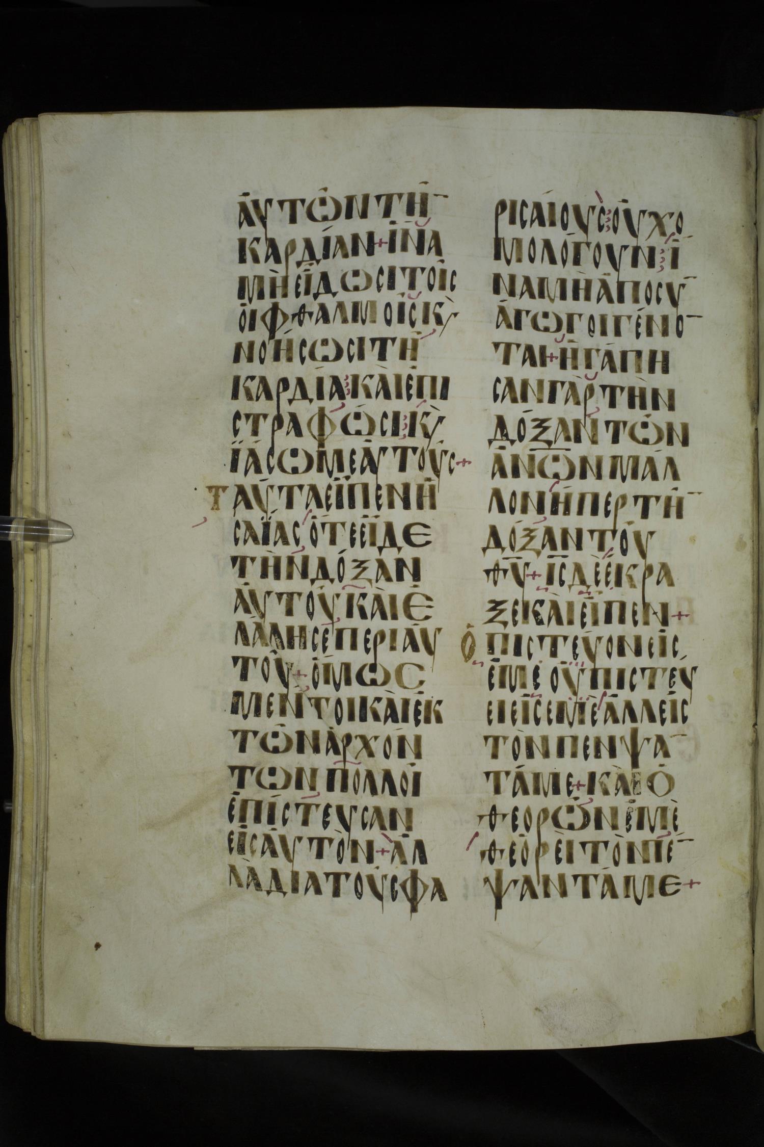 Ninth or tenth century majuscule lectionary on parchment; 273 leaves, 2 columns, 20-21 lines per column. Images were taken at the National Library of Greece in Athens.