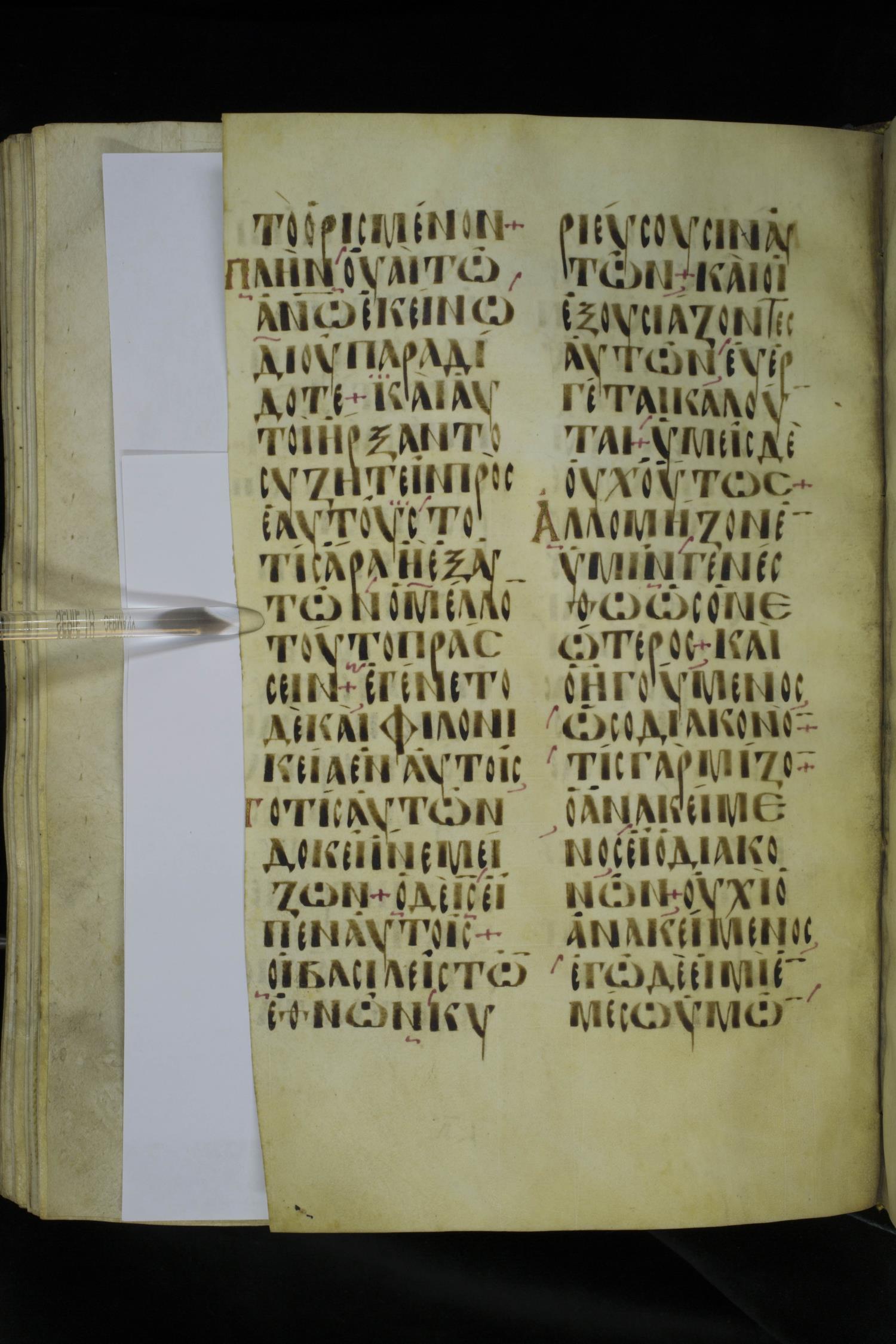 Ninth or tenth century majuscule lectionary on parchment; 273 leaves, 2 columns, 20-21 lines per column. Images were taken at the National Library of Greece in Athens.