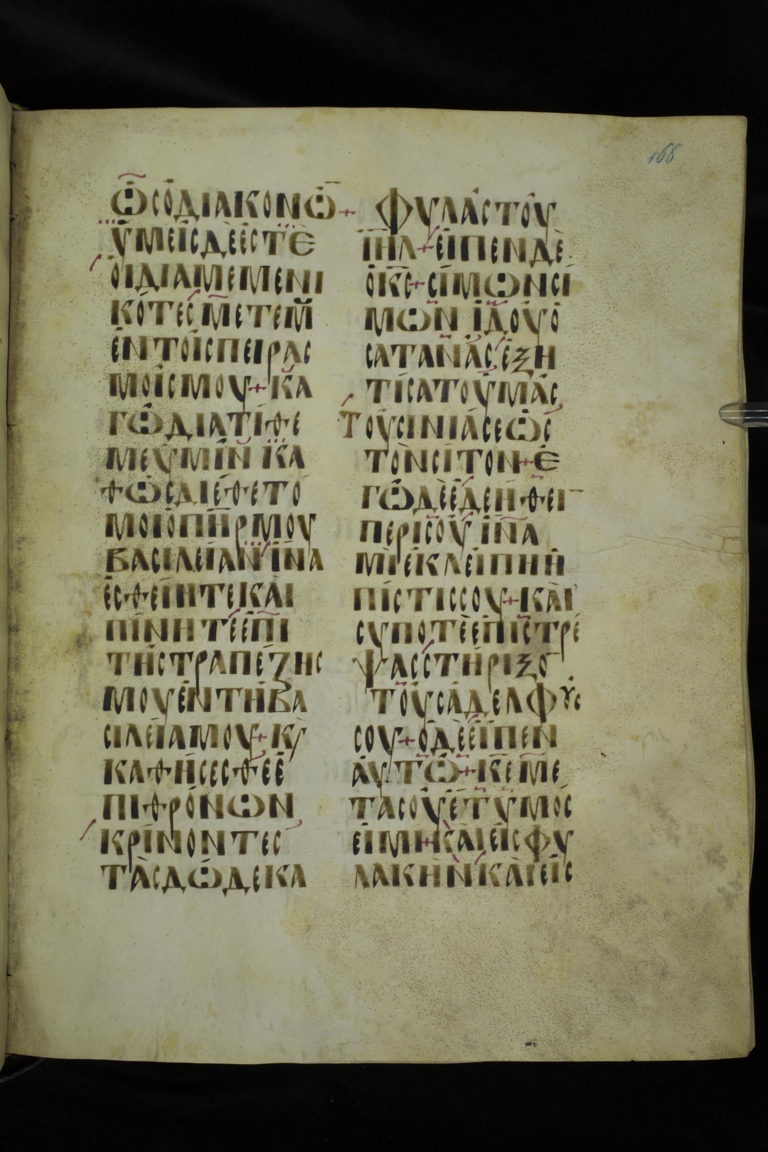 Ninth or tenth century majuscule lectionary on parchment; 273 leaves, 2 columns, 20-21 lines per column. Images were taken at the National Library of Greece in Athens.