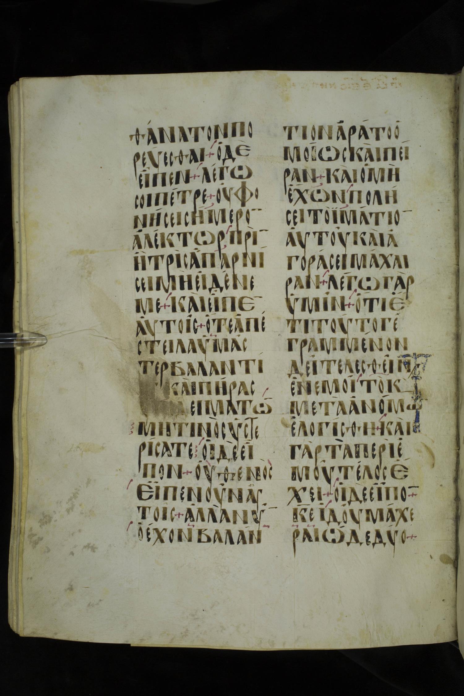 Ninth or tenth century majuscule lectionary on parchment; 273 leaves, 2 columns, 20-21 lines per column. Images were taken at the National Library of Greece in Athens.