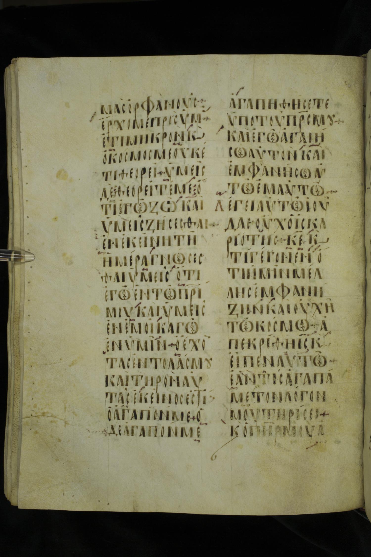Ninth or tenth century majuscule lectionary on parchment; 273 leaves, 2 columns, 20-21 lines per column. Images were taken at the National Library of Greece in Athens.