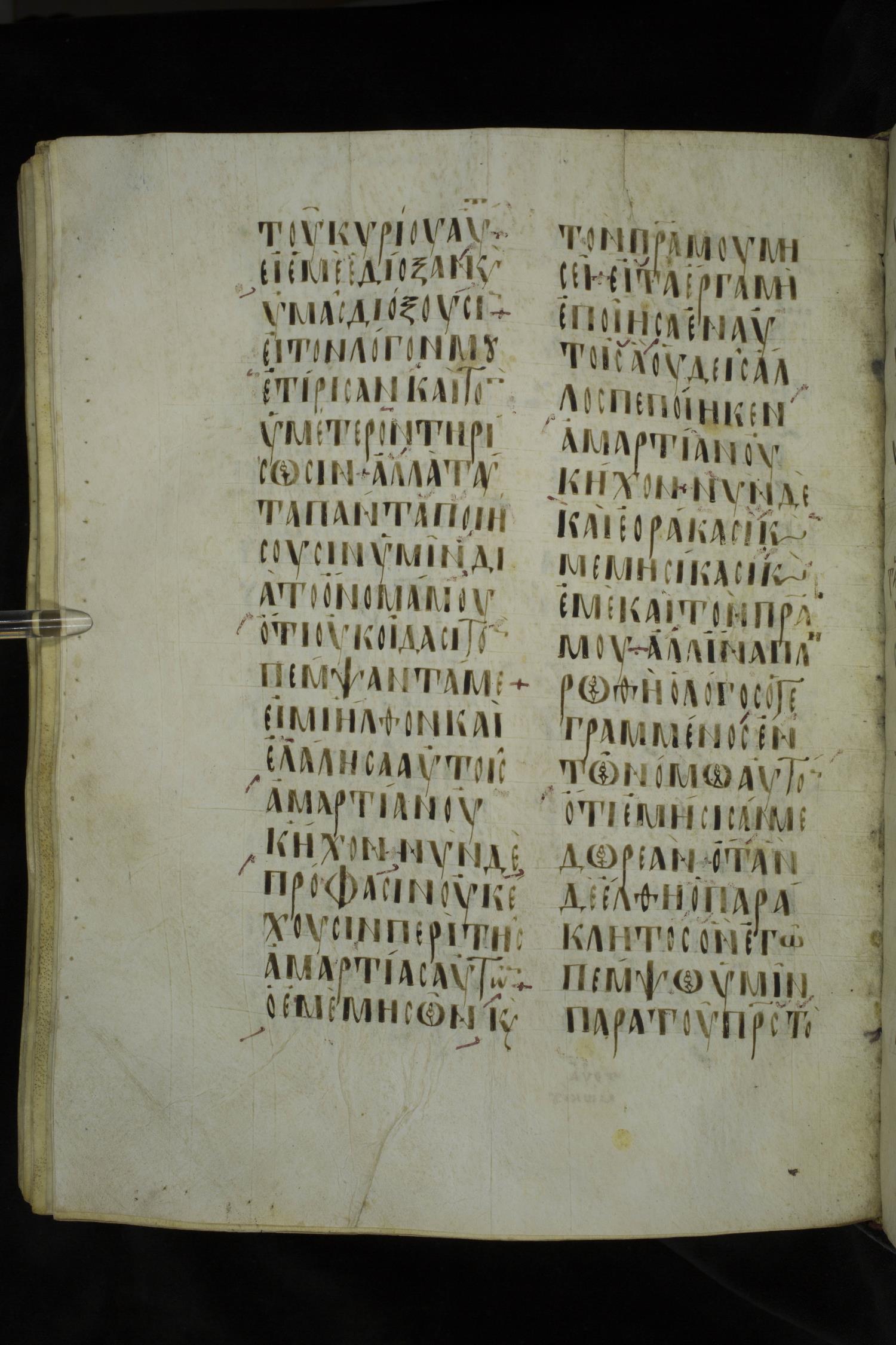 Ninth or tenth century majuscule lectionary on parchment; 273 leaves, 2 columns, 20-21 lines per column. Images were taken at the National Library of Greece in Athens.