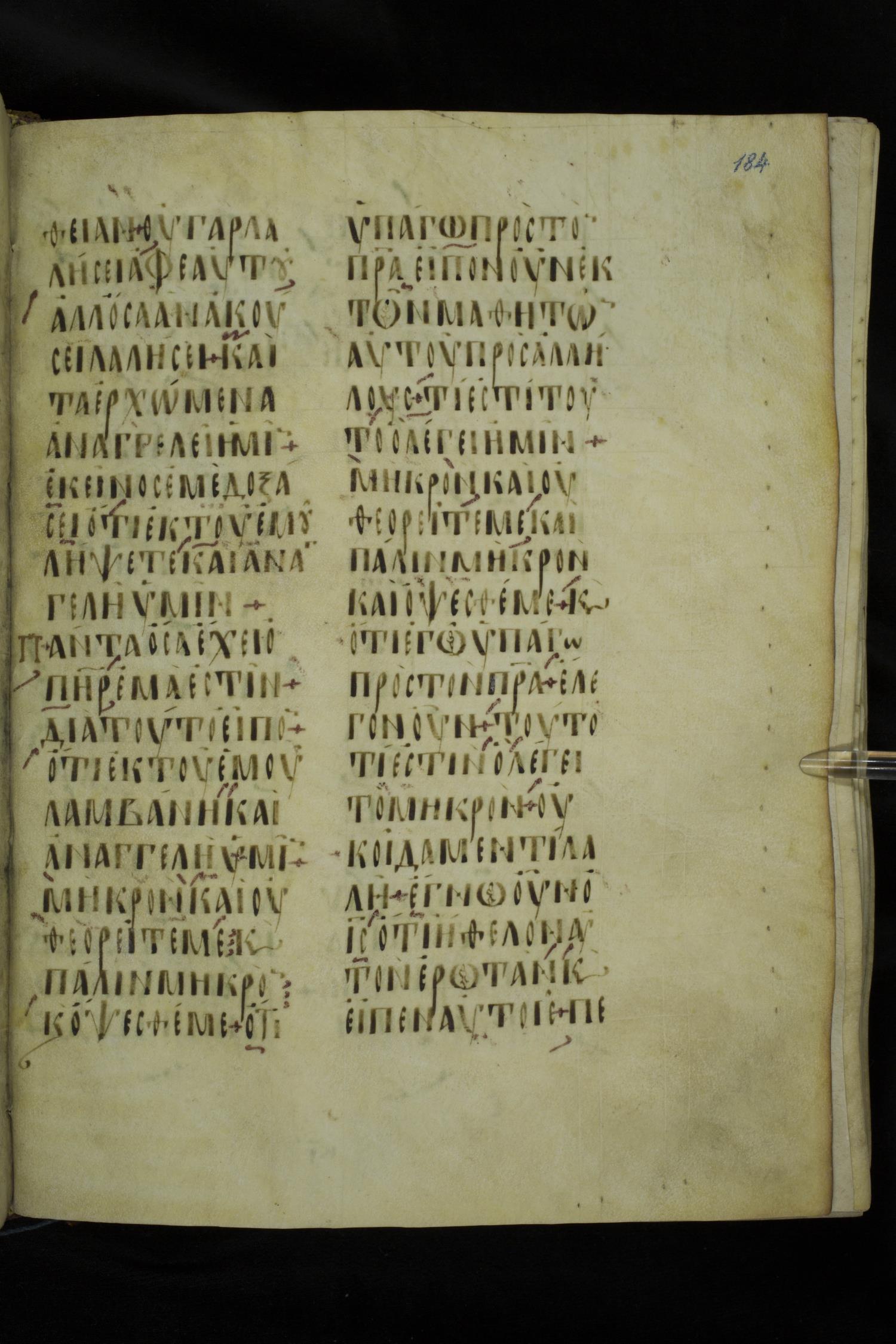 Ninth or tenth century majuscule lectionary on parchment; 273 leaves, 2 columns, 20-21 lines per column. Images were taken at the National Library of Greece in Athens.