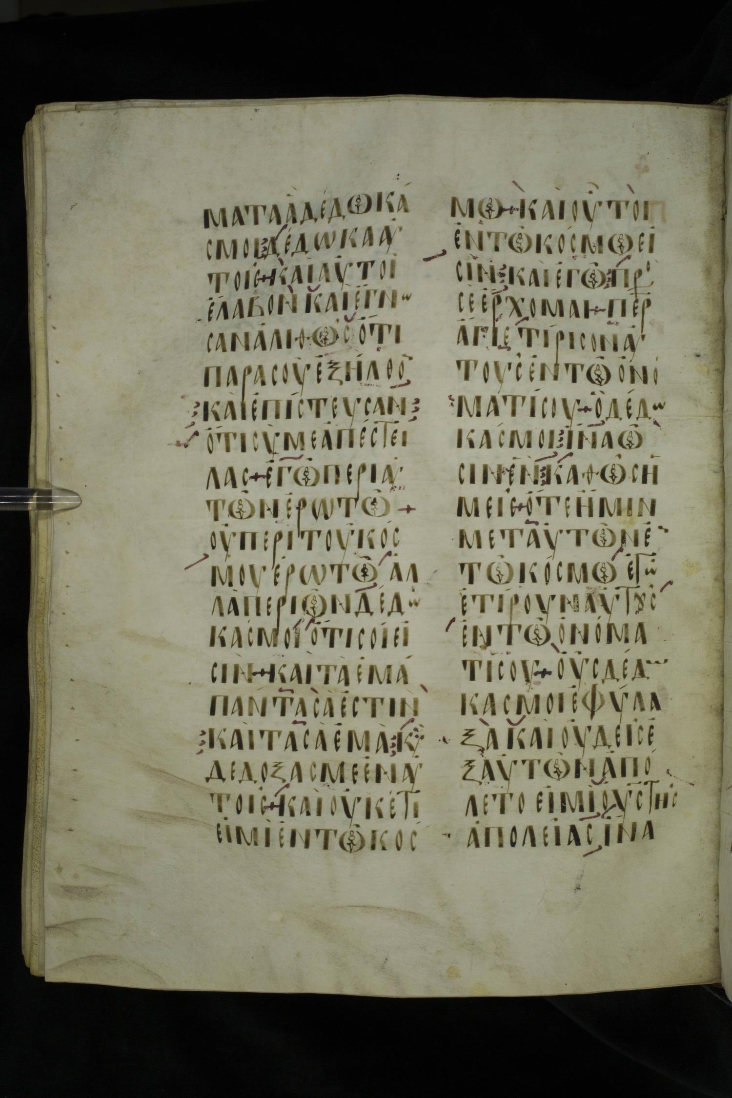 Ninth or tenth century majuscule lectionary on parchment; 273 leaves, 2 columns, 20-21 lines per column. Images were taken at the National Library of Greece in Athens.