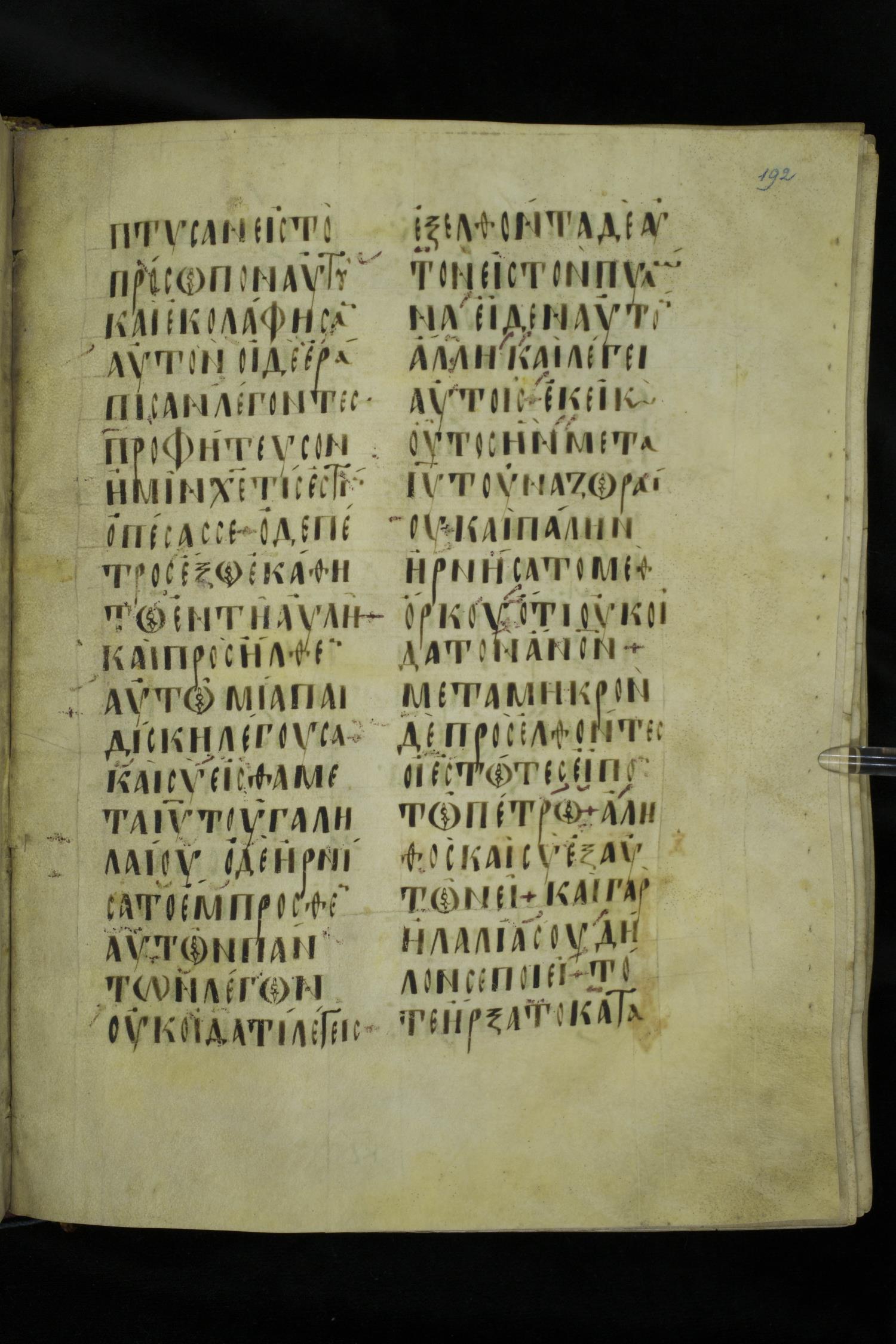 Ninth or tenth century majuscule lectionary on parchment; 273 leaves, 2 columns, 20-21 lines per column. Images were taken at the National Library of Greece in Athens.