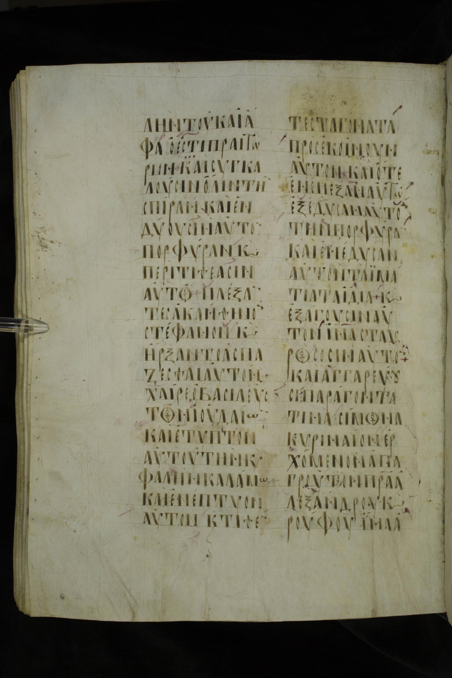 Ninth or tenth century majuscule lectionary on parchment; 273 leaves, 2 columns, 20-21 lines per column. Images were taken at the National Library of Greece in Athens.