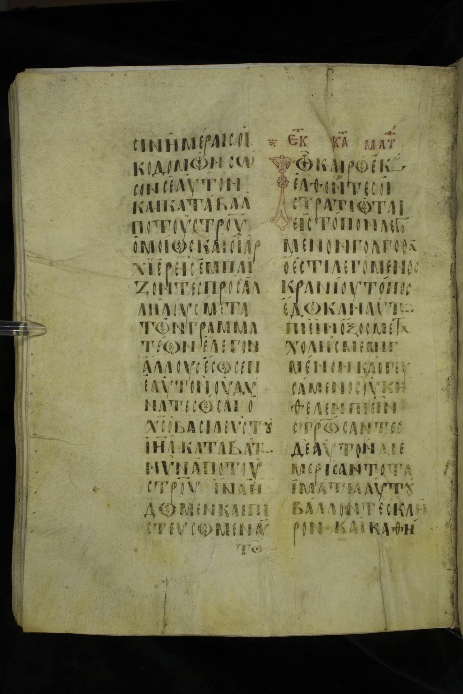 Ninth or tenth century majuscule lectionary on parchment; 273 leaves, 2 columns, 20-21 lines per column. Images were taken at the National Library of Greece in Athens.