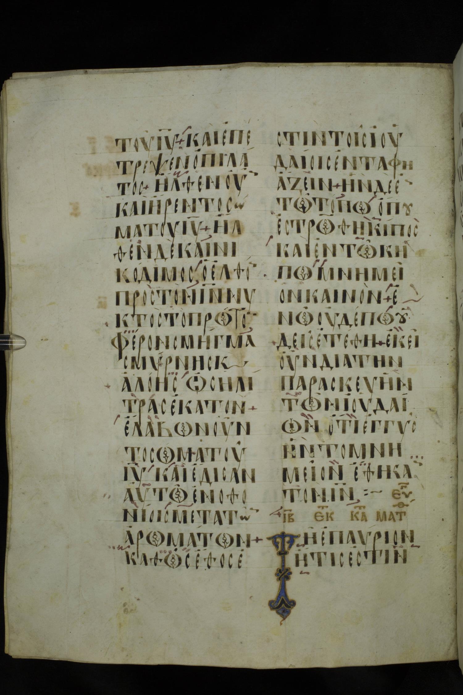 Ninth or tenth century majuscule lectionary on parchment; 273 leaves, 2 columns, 20-21 lines per column. Images were taken at the National Library of Greece in Athens.