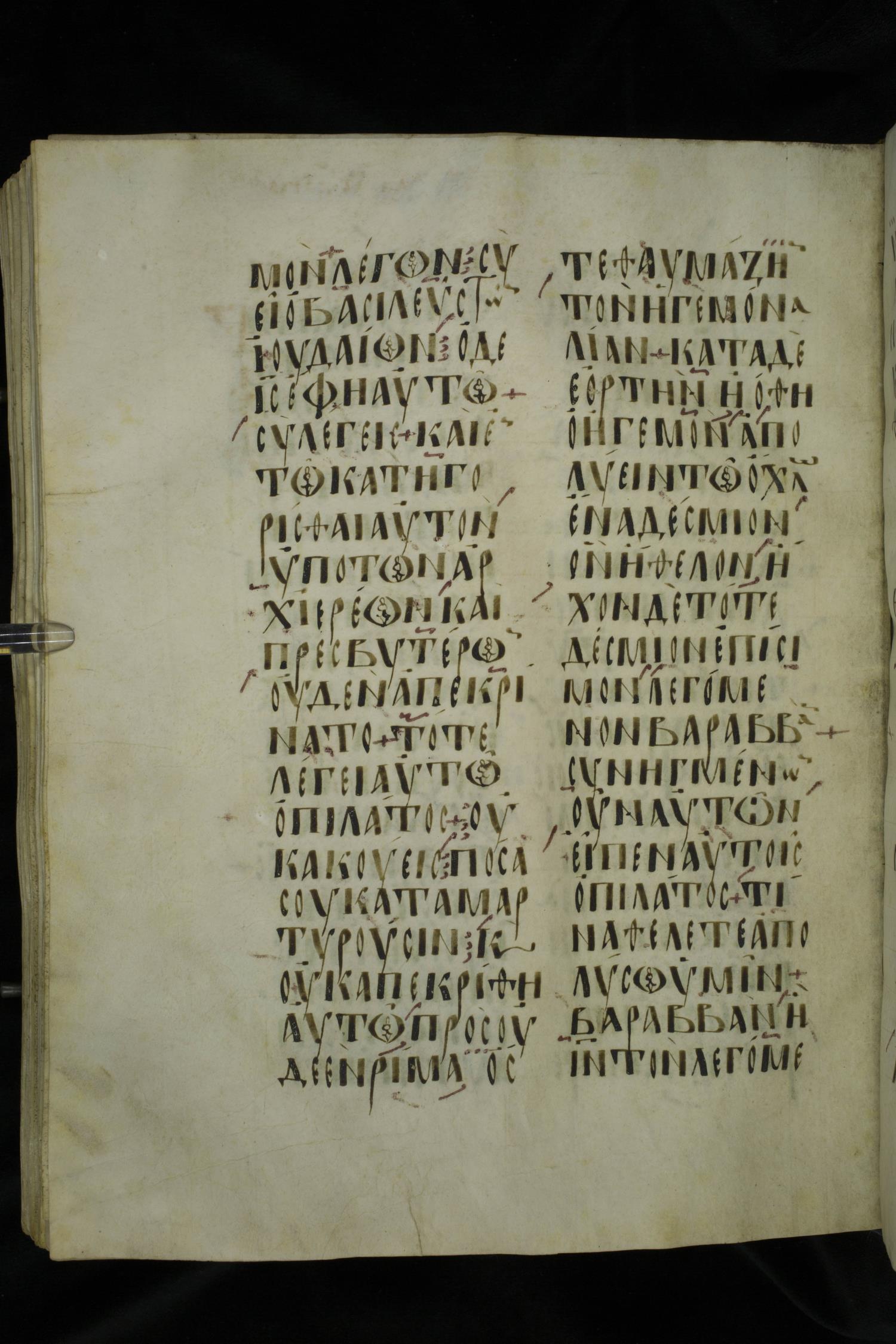 Ninth or tenth century majuscule lectionary on parchment; 273 leaves, 2 columns, 20-21 lines per column. Images were taken at the National Library of Greece in Athens.