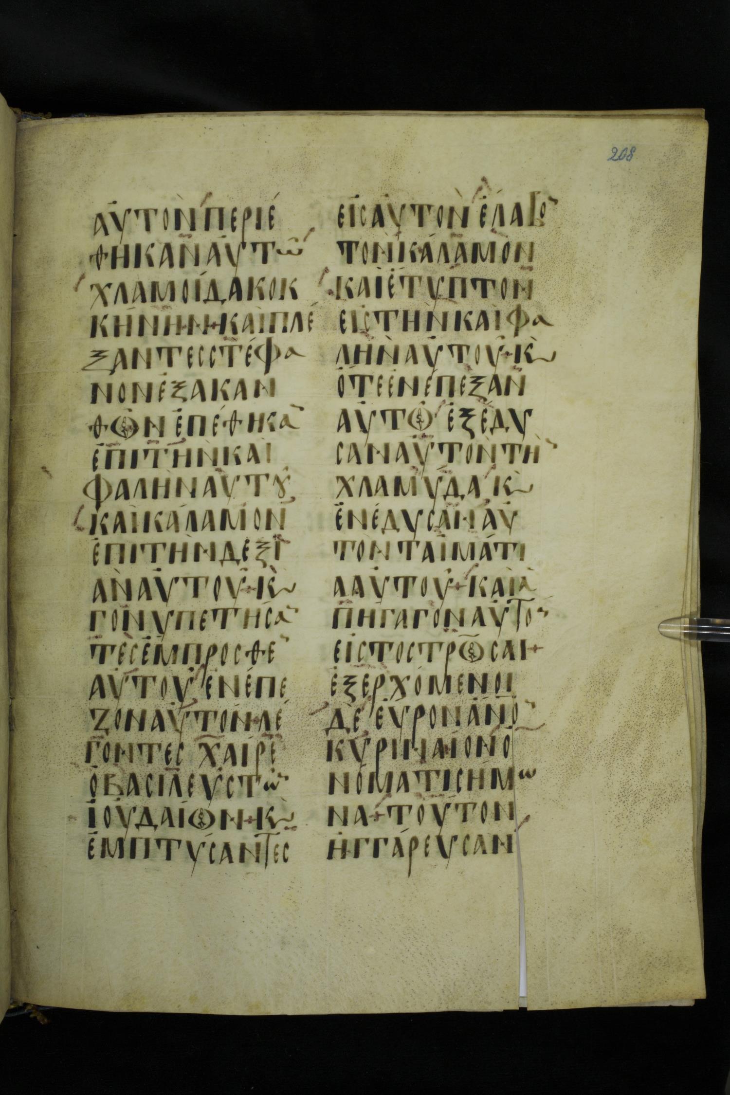 Ninth or tenth century majuscule lectionary on parchment; 273 leaves, 2 columns, 20-21 lines per column. Images were taken at the National Library of Greece in Athens.