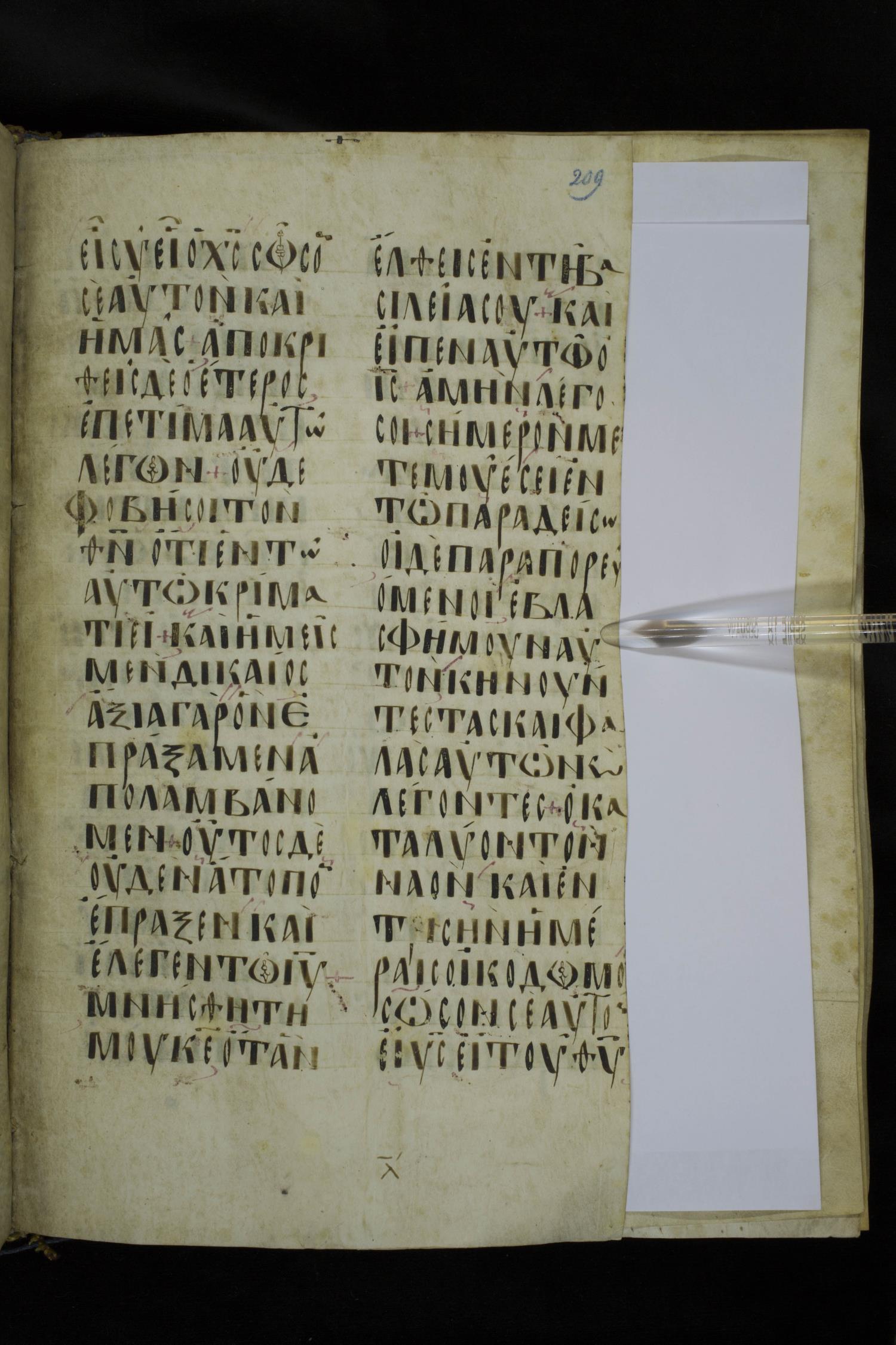 Ninth or tenth century majuscule lectionary on parchment; 273 leaves, 2 columns, 20-21 lines per column. Images were taken at the National Library of Greece in Athens.