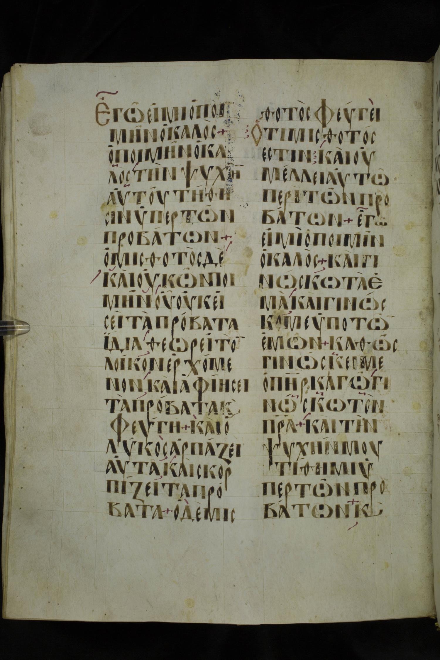 Ἐγώ εἰμι ὁ ποιμὴν ὁ καλός· ὁ ποιμὴν ὁ καλὸς τὴν ψυχὴν αὐτοῦ τίθησιν ὑπὲρ τῶν προβάτων·