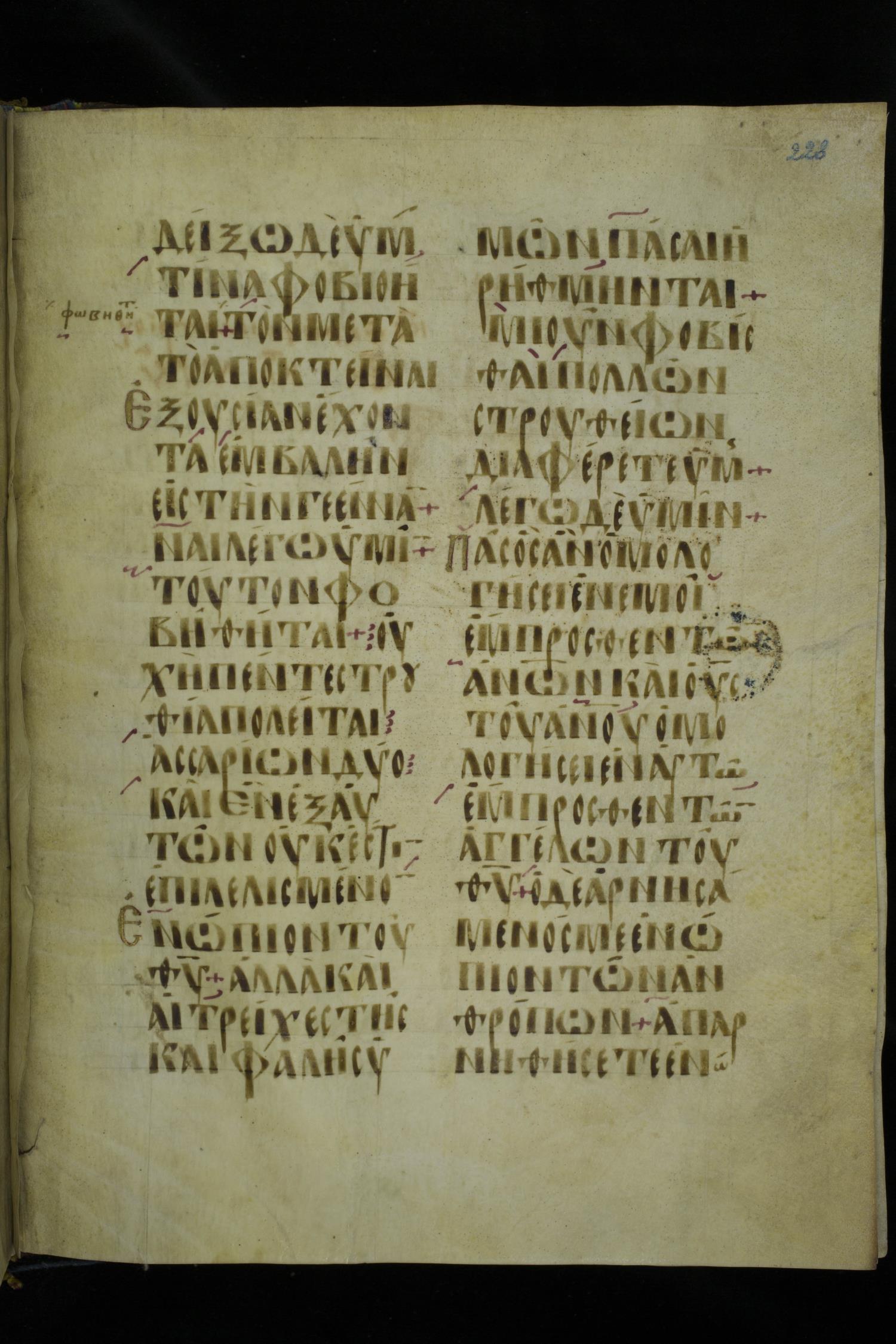 Ninth or tenth century majuscule lectionary on parchment; 273 leaves, 2 columns, 20-21 lines per column. Images were taken at the National Library of Greece in Athens.