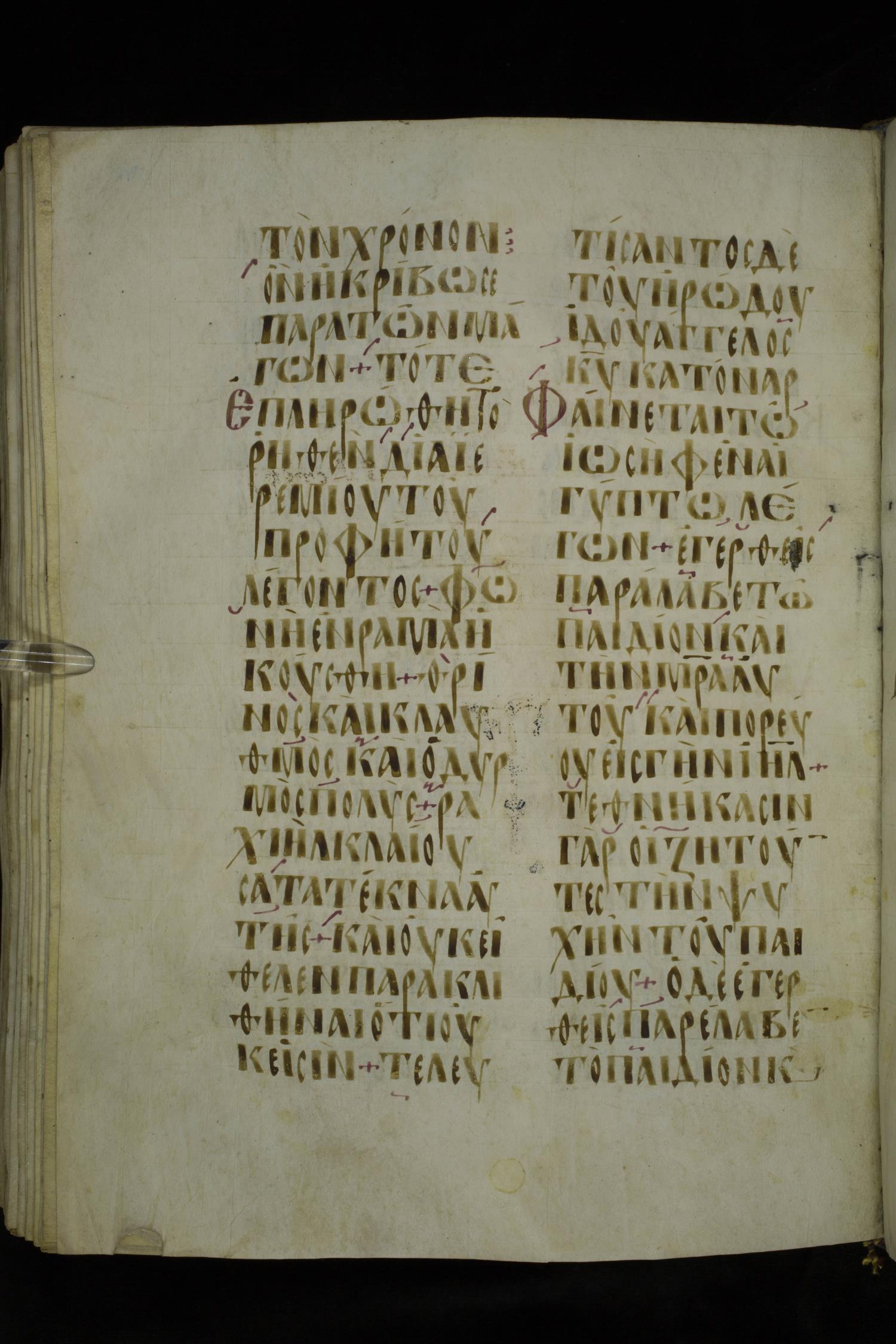 Ninth or tenth century majuscule lectionary on parchment; 273 leaves, 2 columns, 20-21 lines per column. Images were taken at the National Library of Greece in Athens.