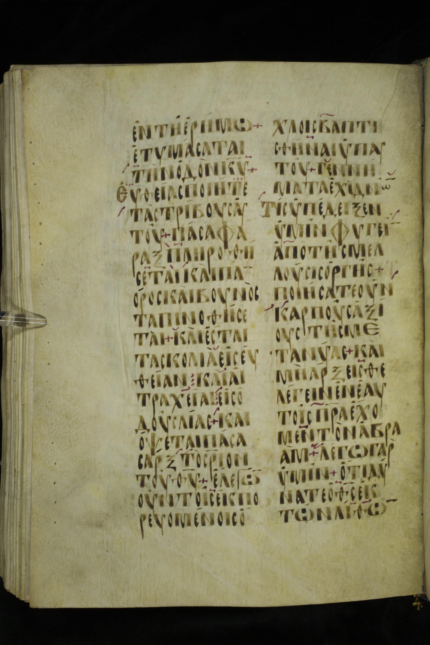 Ninth or tenth century majuscule lectionary on parchment; 273 leaves, 2 columns, 20-21 lines per column. Images were taken at the National Library of Greece in Athens.