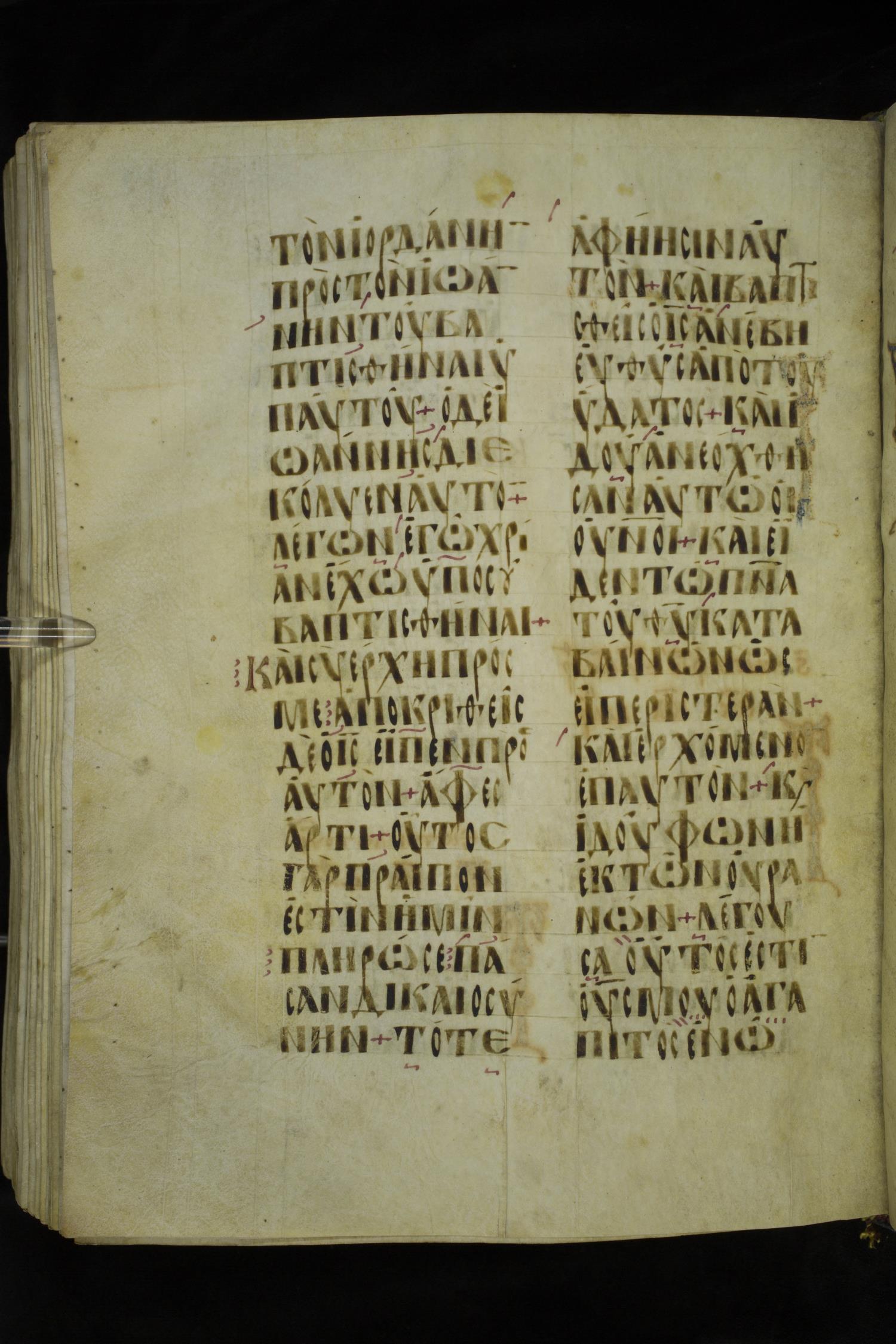Τότε παραγίνεται ὁ Ἰησοῦς ἀπὸ τῆς Γαλιλαίας ἐπὶ τὸν Ἰορδάνην πρὸς τὸν Ἰωάνην / Ἰωάννην τοῦ βαπτισθῆναι ὑπ´ αὐτοῦ.
