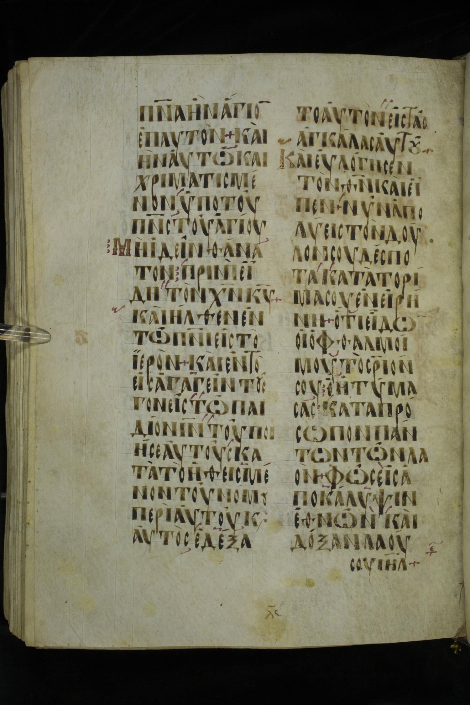 Ninth or tenth century majuscule lectionary on parchment; 273 leaves, 2 columns, 20-21 lines per column. Images were taken at the National Library of Greece in Athens.