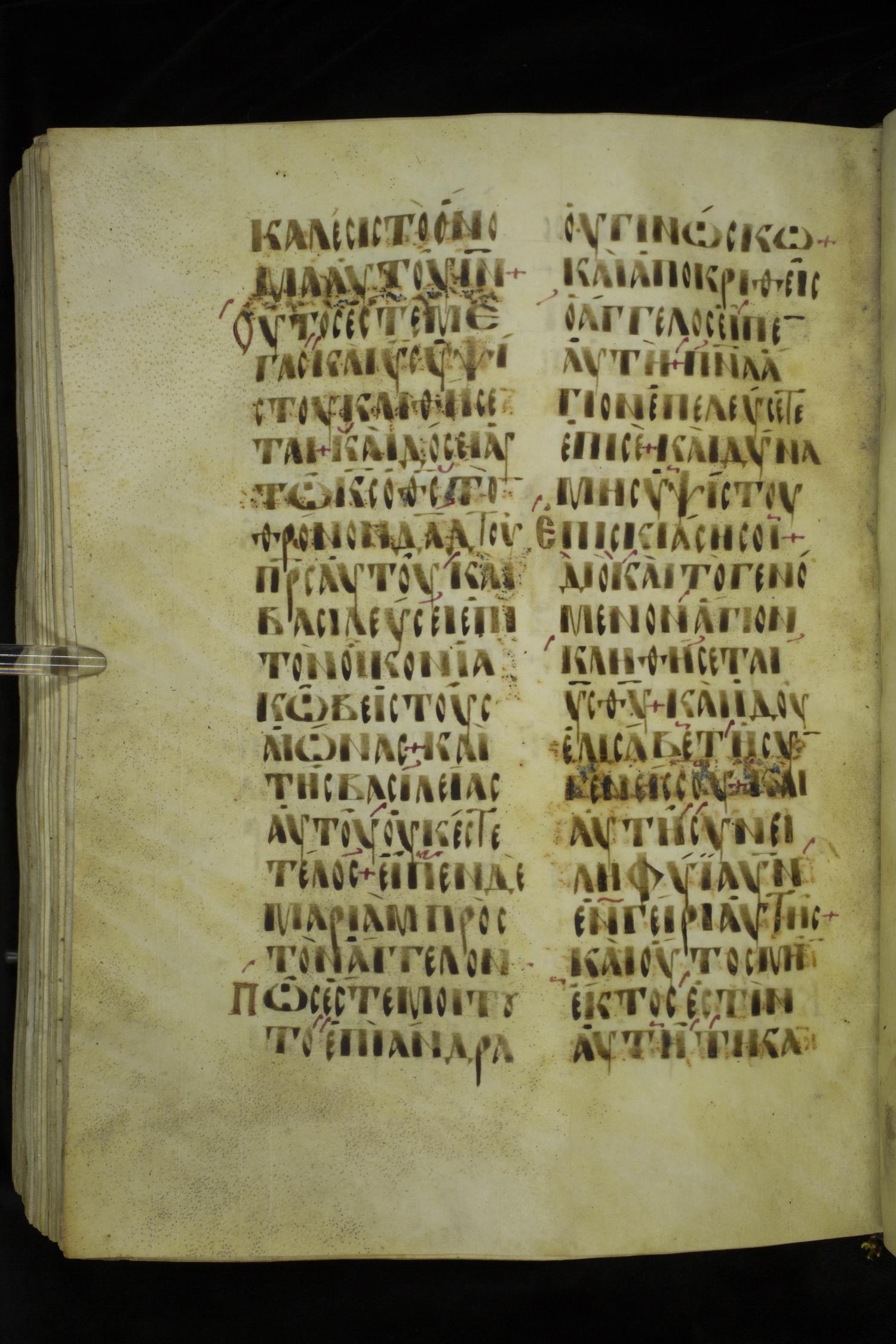 Ninth or tenth century majuscule lectionary on parchment; 273 leaves, 2 columns, 20-21 lines per column. Images were taken at the National Library of Greece in Athens.