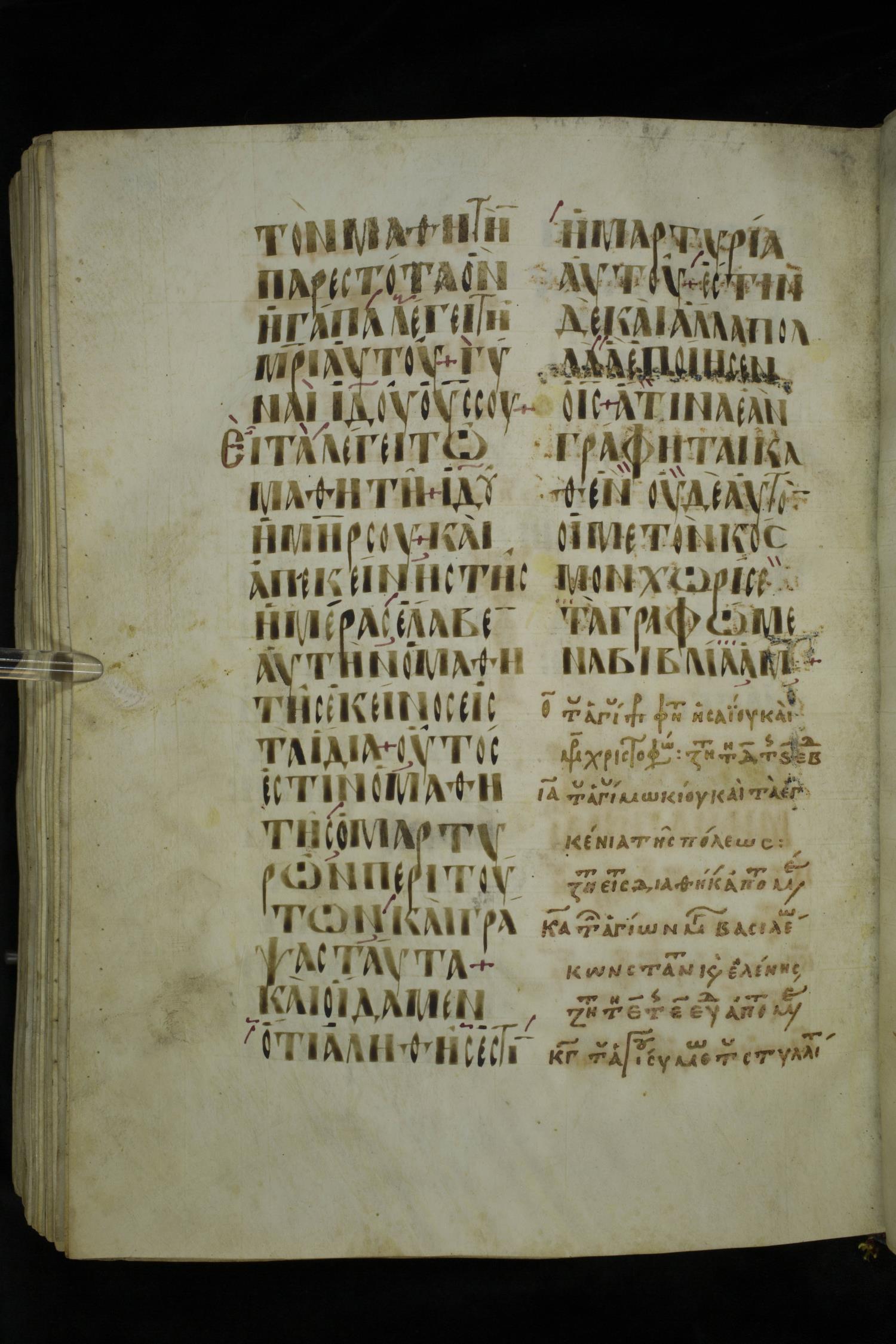 Ninth or tenth century majuscule lectionary on parchment; 273 leaves, 2 columns, 20-21 lines per column. Images were taken at the National Library of Greece in Athens.
