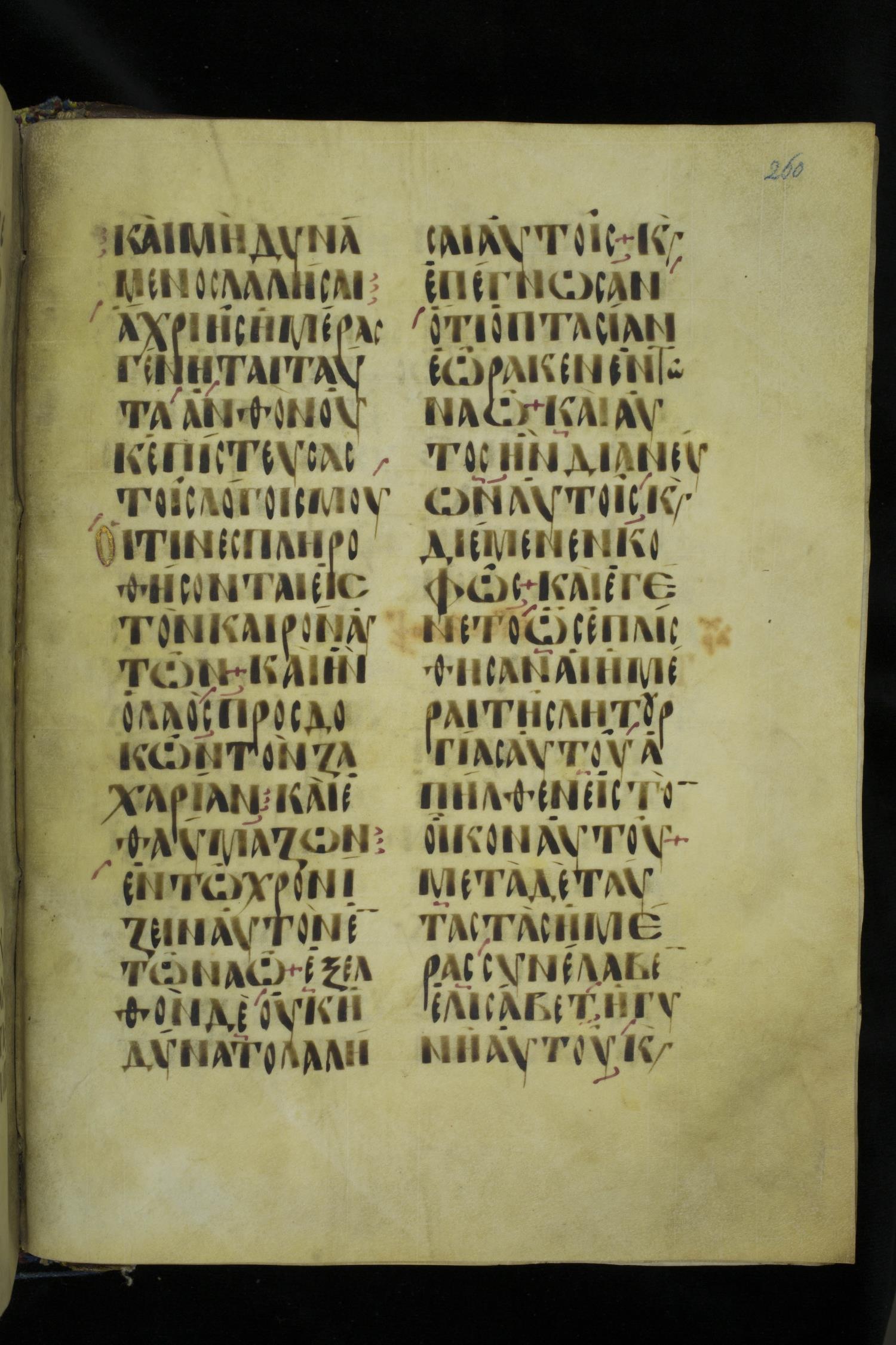 Ninth or tenth century majuscule lectionary on parchment; 273 leaves, 2 columns, 20-21 lines per column. Images were taken at the National Library of Greece in Athens.