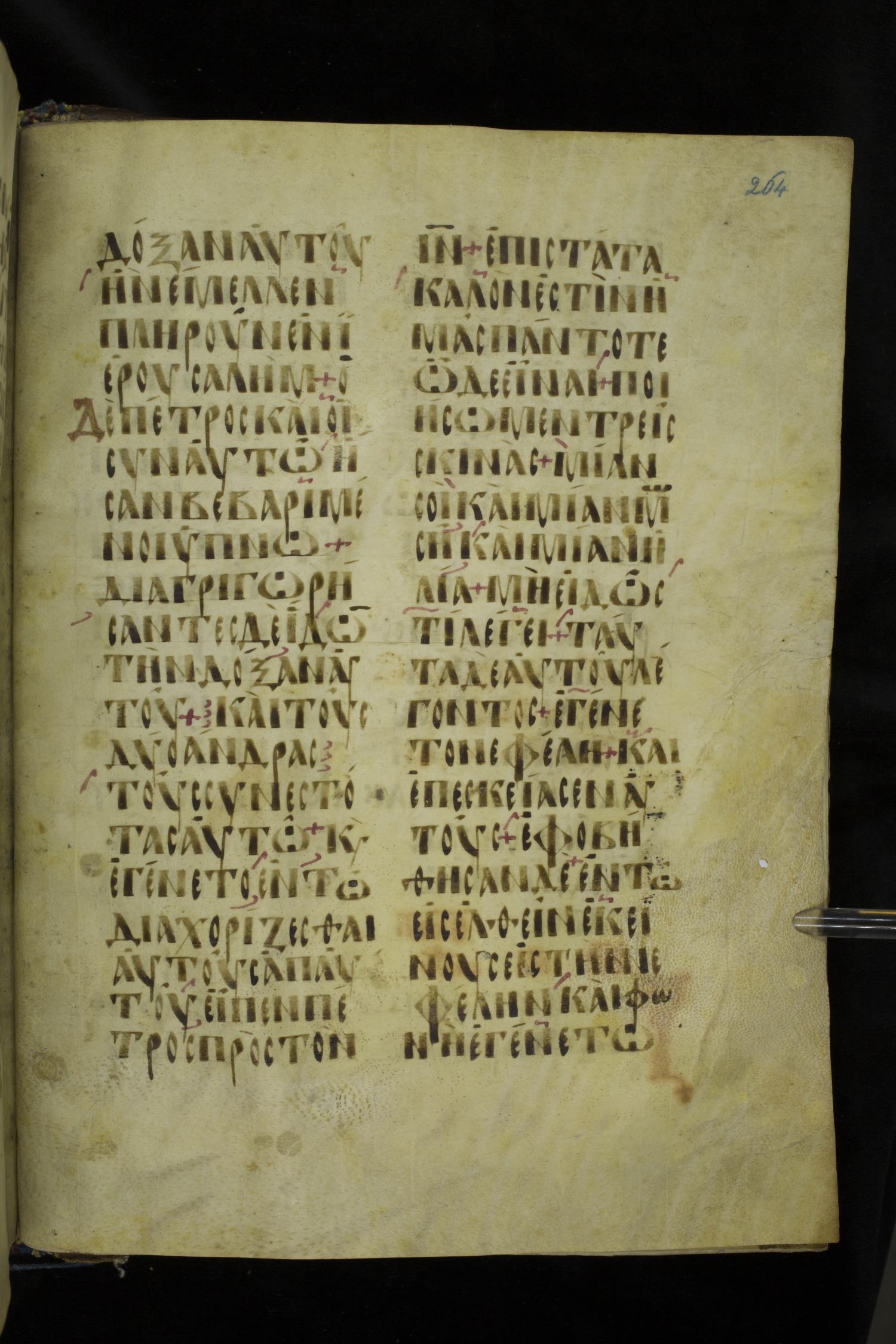 Ninth or tenth century majuscule lectionary on parchment; 273 leaves, 2 columns, 20-21 lines per column. Images were taken at the National Library of Greece in Athens.