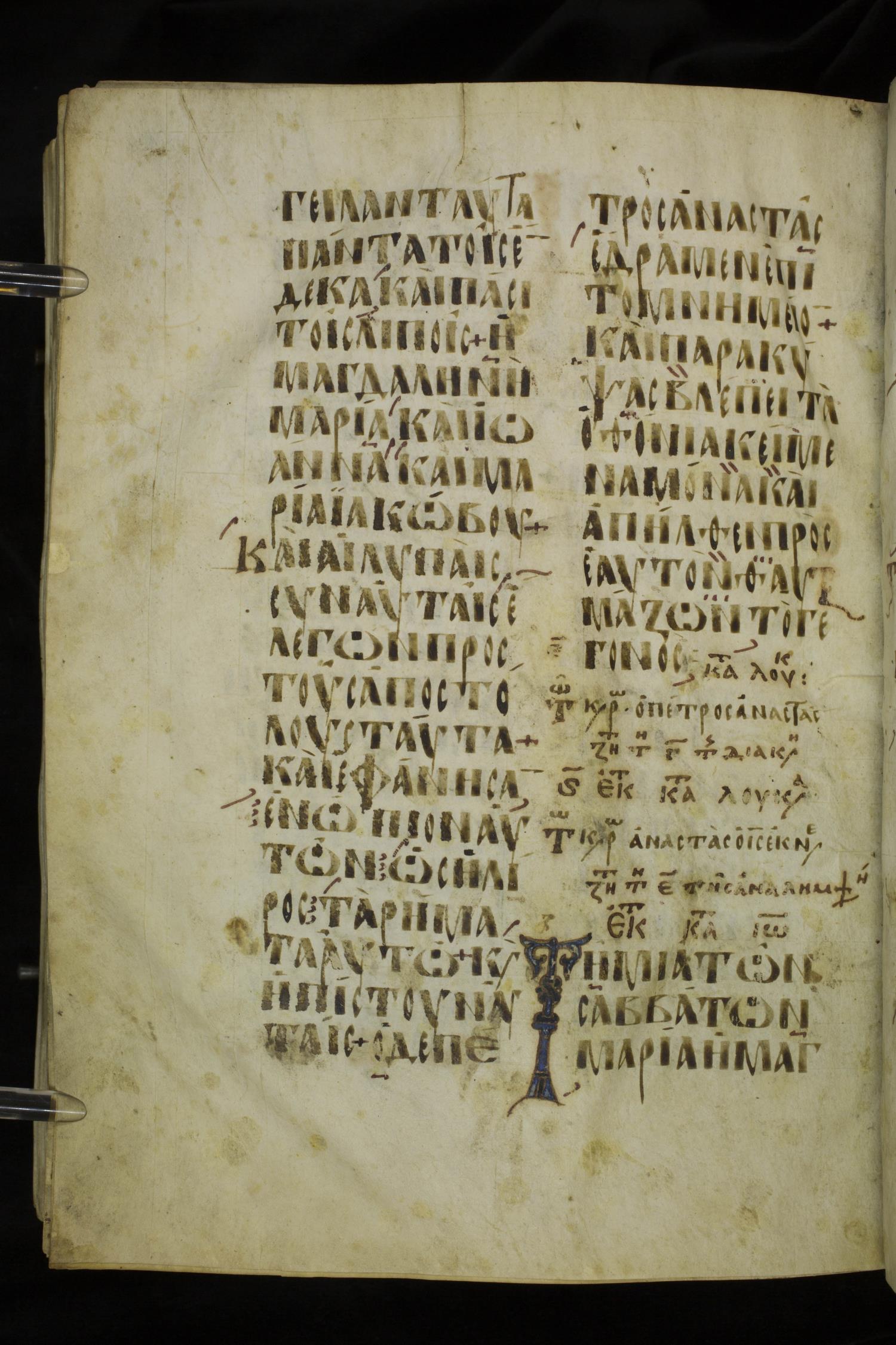 Ninth or tenth century majuscule lectionary on parchment; 273 leaves, 2 columns, 20-21 lines per column. Images were taken at the National Library of Greece in Athens.