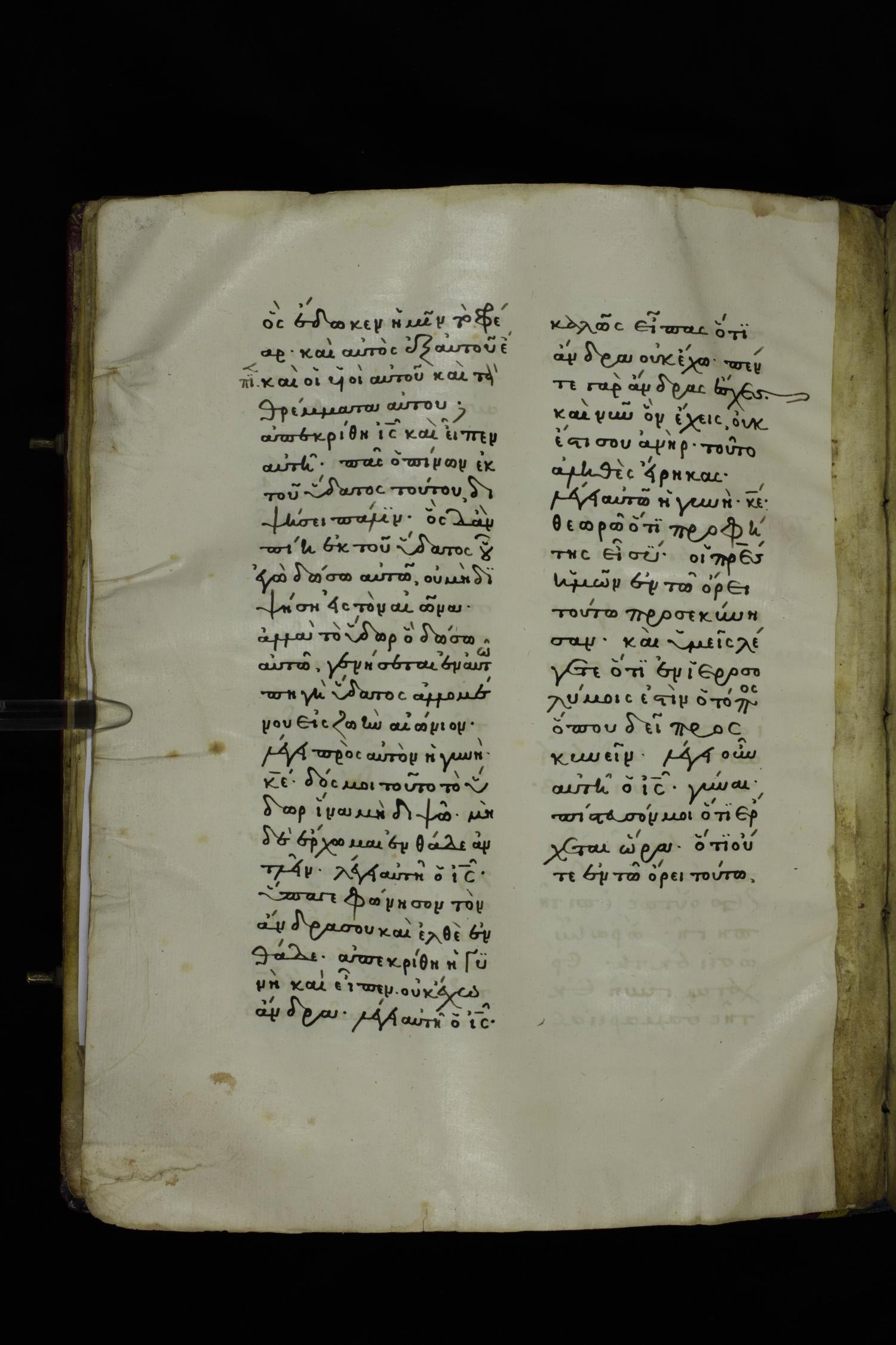 Twelfth century lectionary of the Gospels on parchment; 220 leaves, 2 columns, 24 lines per column. Images were taken at the National Library of Greece in Athens.