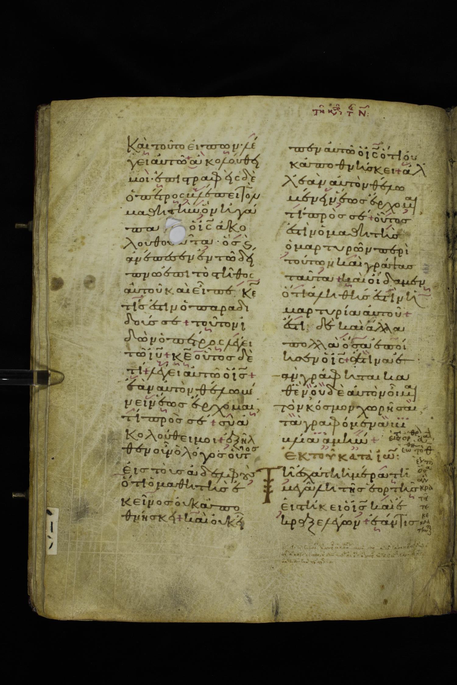 Twelfth century lectionary of the Gospels on parchment; 220 leaves, 2 columns, 24 lines per column. Images were taken at the National Library of Greece in Athens.