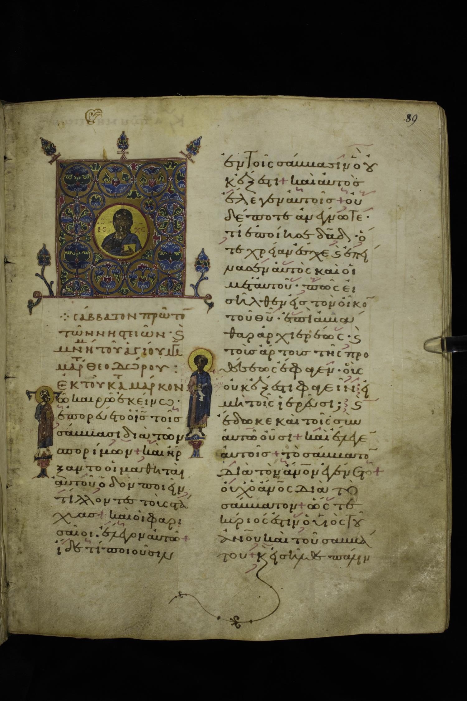 Twelfth century lectionary of the Gospels on parchment; 220 leaves, 2 columns, 24 lines per column. Images were taken at the National Library of Greece in Athens.